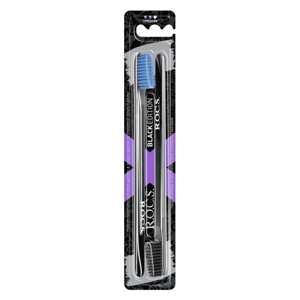 10 цен на Зубная щетка R.O.C.S. Black Edition Classic набор, черный/синий, 1+1 (2 щетки)