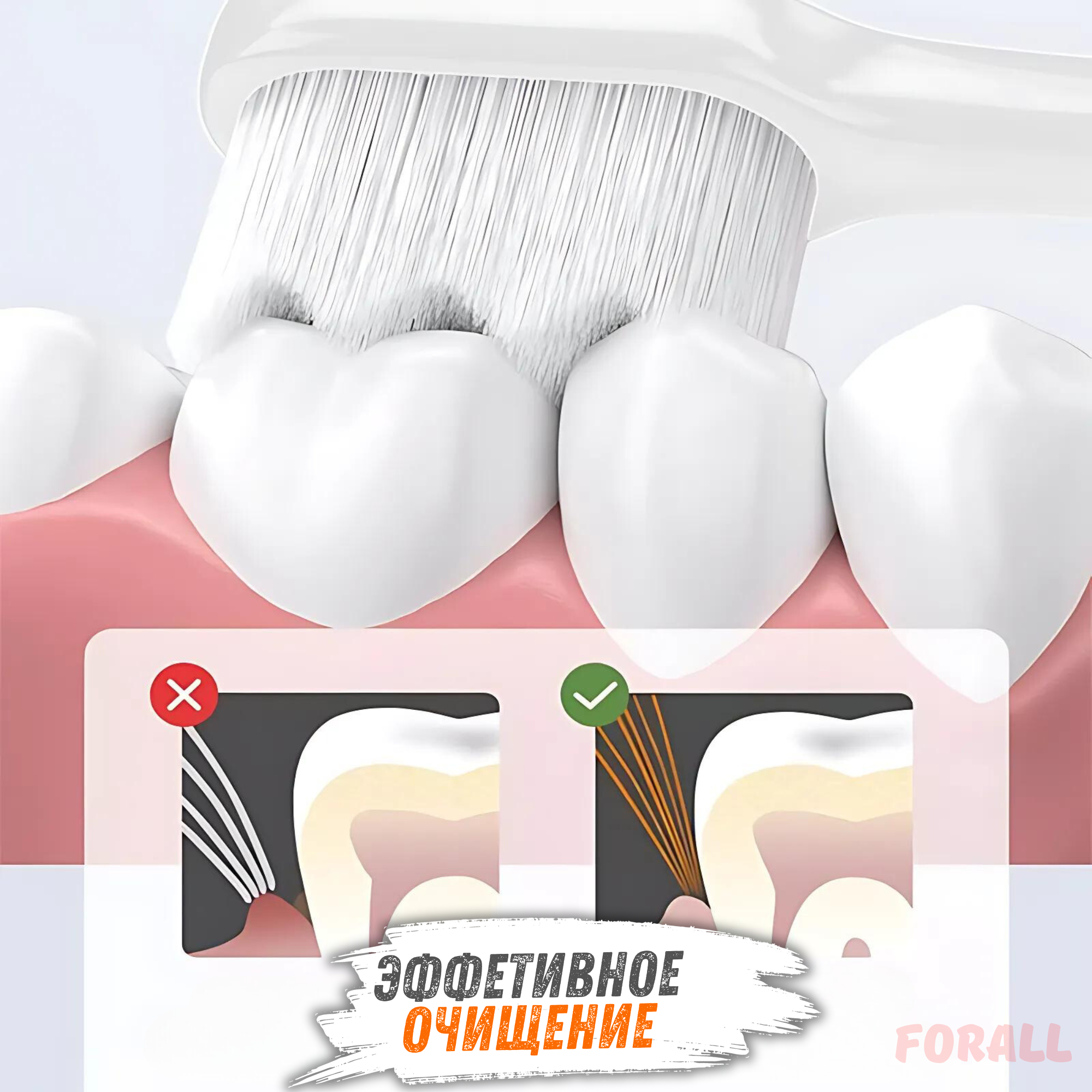 Отзывы на Мягкая зубная щетка ForAll 10000+ с футляром, белая, волнистая щетина, для зубов, десен и брекетов