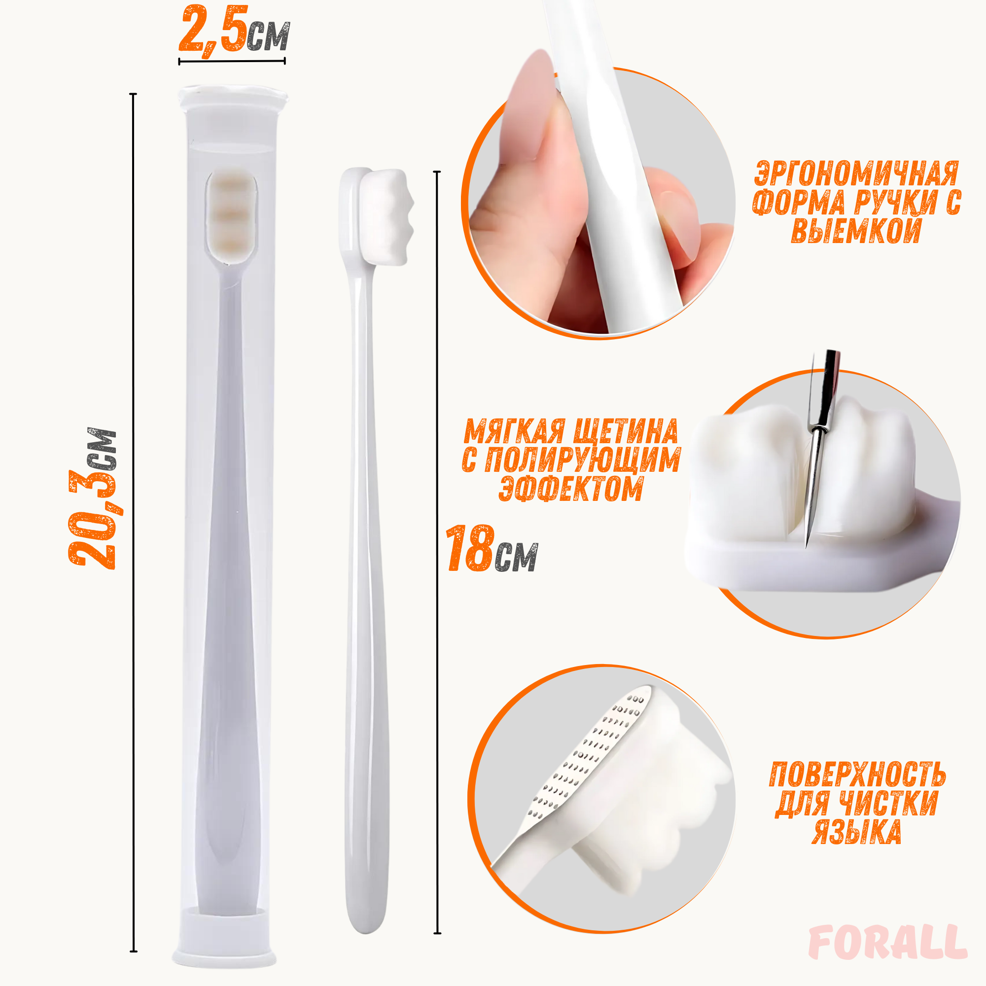 10 цен на Мягкая зубная щетка ForAll 10000+ с футляром, белая, волнистая щетина, для зубов, десен и брекетов