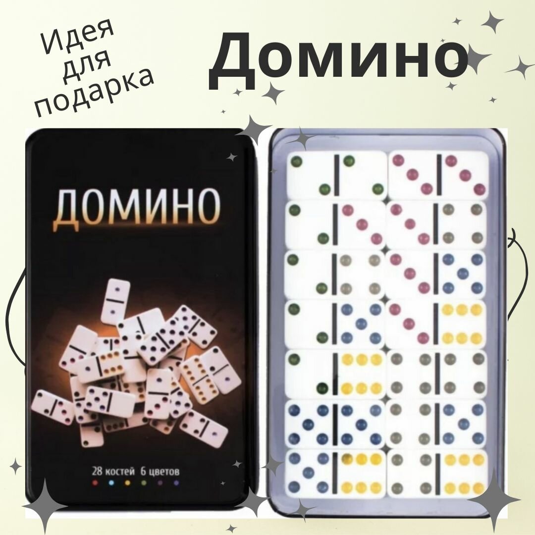 10 цен на Домино классическое в подарочной железной коробке, 28 шт, кость 4,8 х 2,3 см