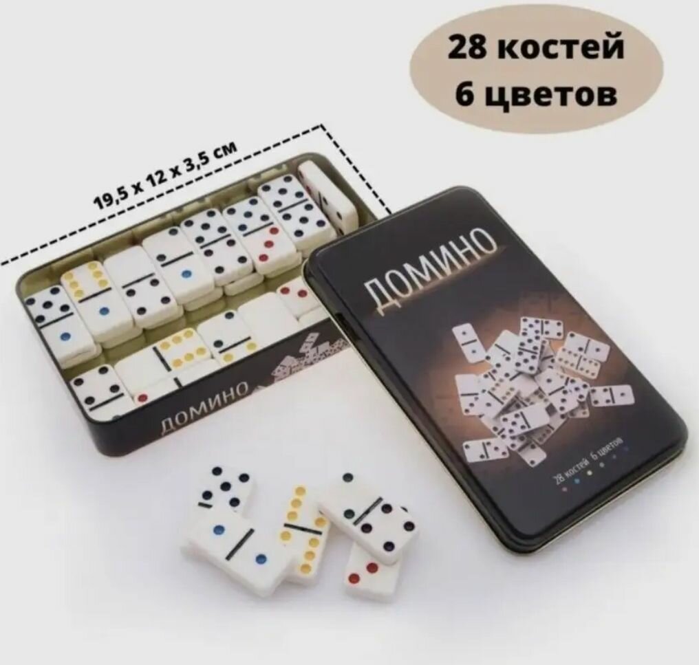 Домино классическое в подарочной железной коробке, 28 шт, кость 4,8 х 2,3 см информация: