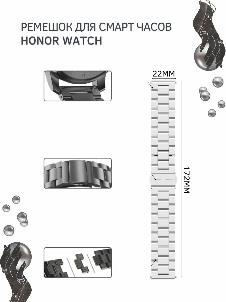 10 цен на Ремешок для часов Honor, для часов Хонор, металлический, шириной 22 мм, серебристый