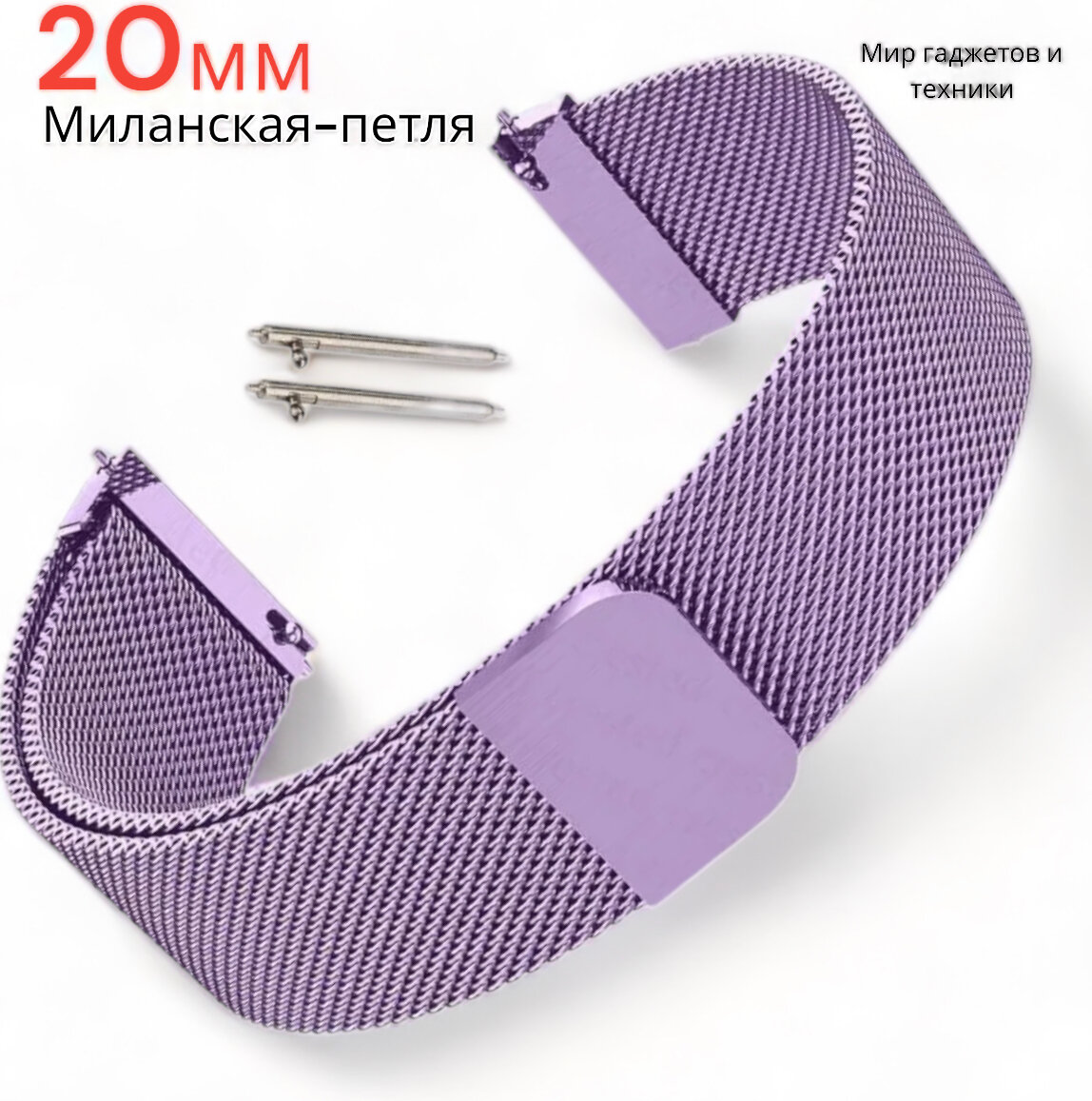 Металлический магнитный ремешок 20мм для Amazfit Bip /GTR /GTS/ Galaxy Watch /Gear /Huawei /Honor миланская петля /светло-сереневый информация: