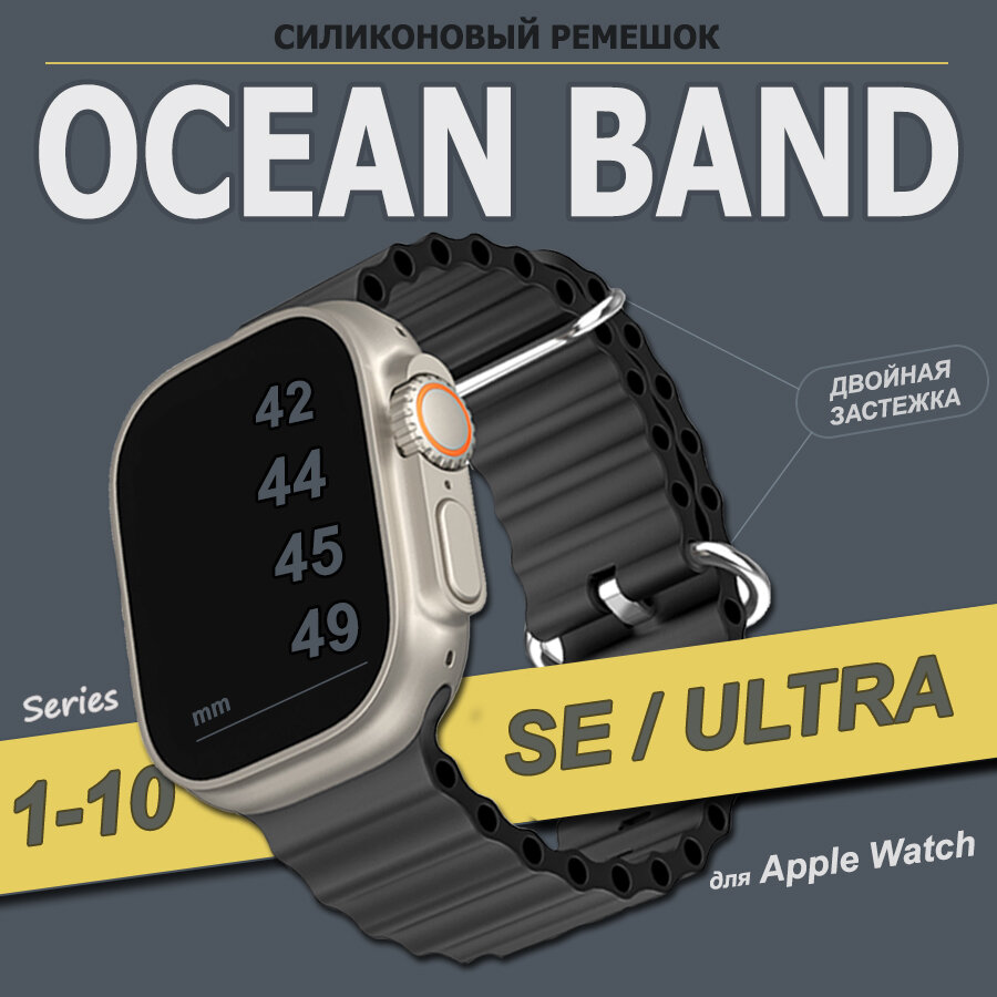 10 цен на Ремешок для Apple Watch Series 1-10, SE, Ultra 42/44/45/49mm, Ocean Band, Черный