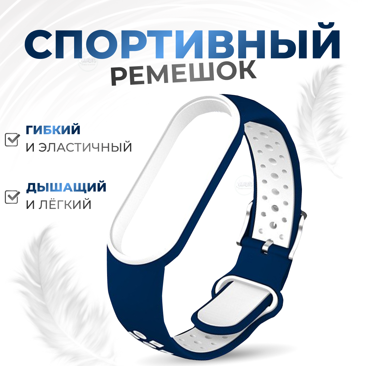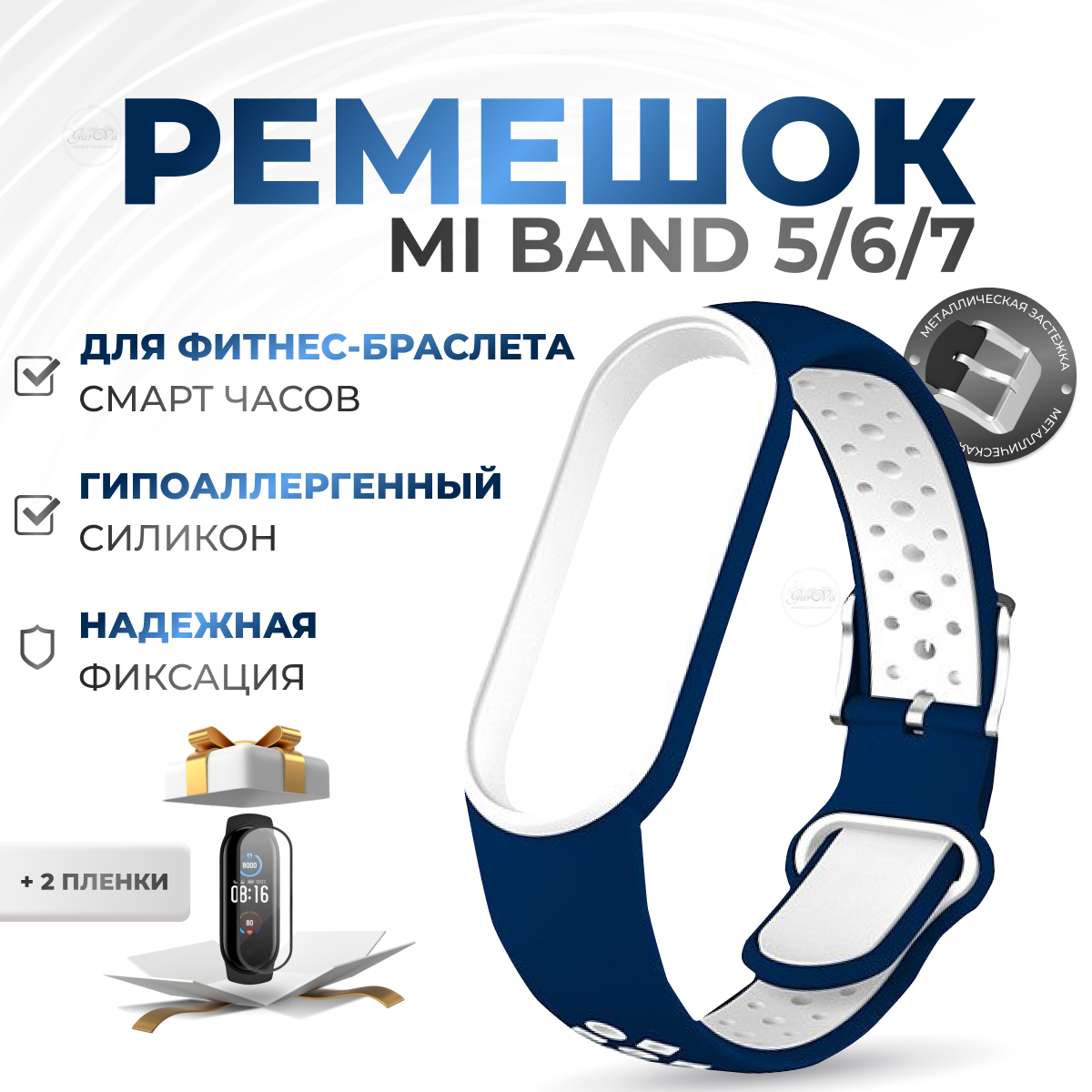 Отзывы на Силиконовый ремешок для смарт часов Xiaomi Mi Band 5,6,7 / браслет на фитнес трекер / Синий-белый