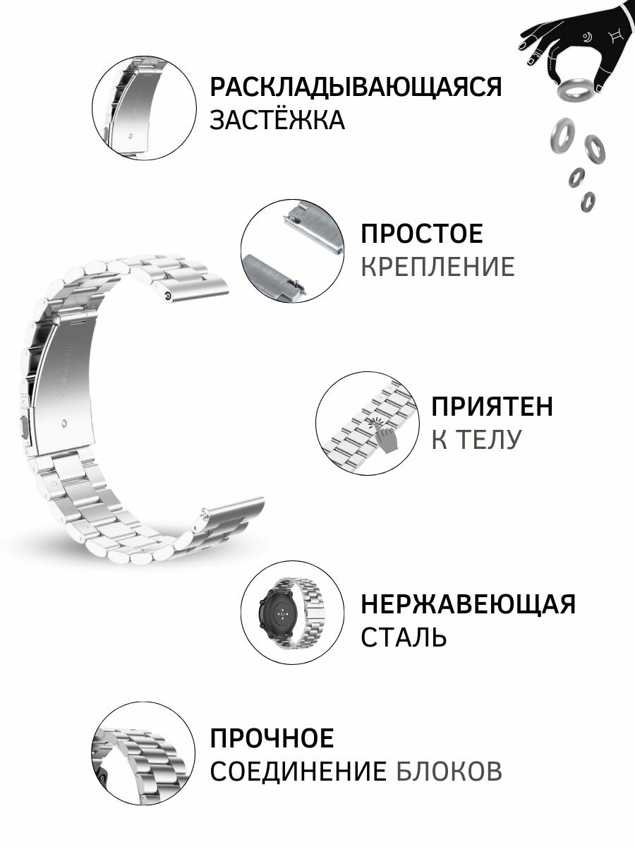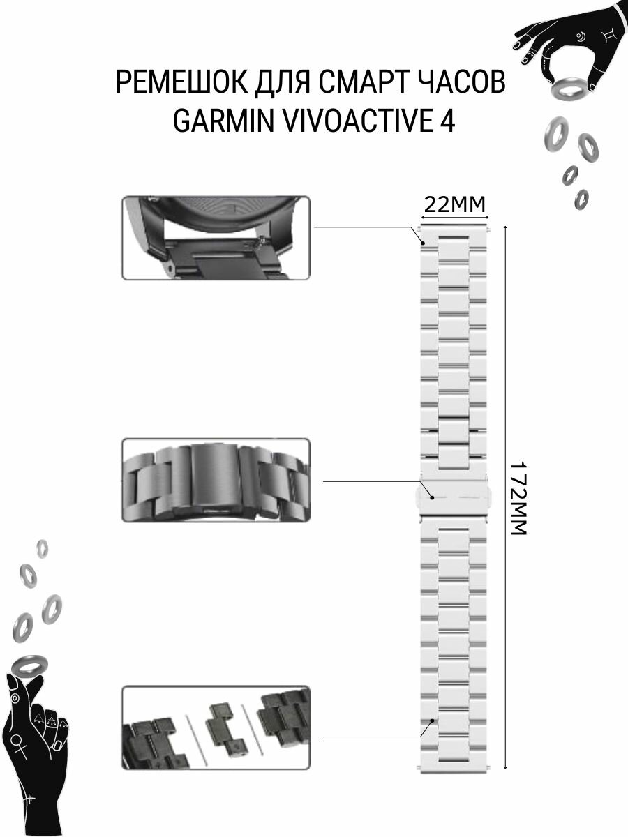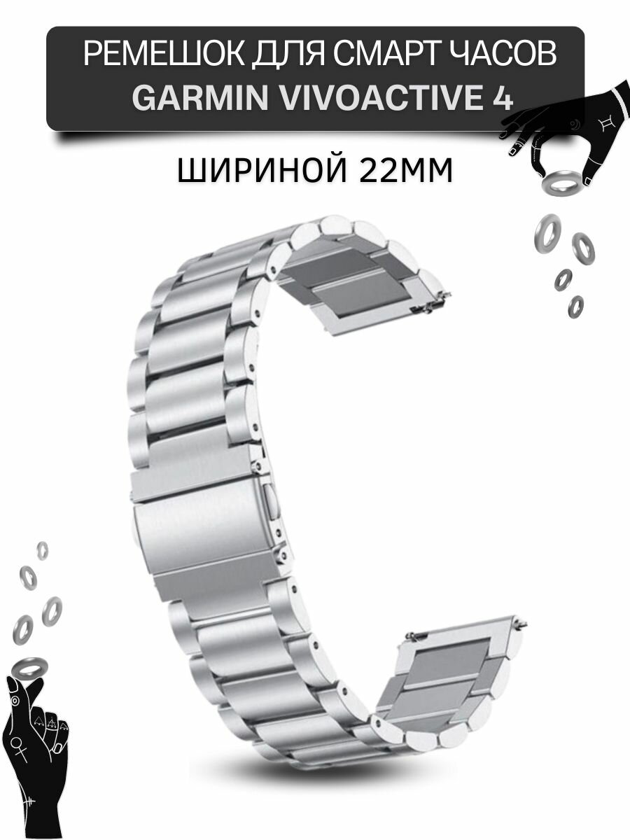 Ремешок для часов Garmin, металлический, шириной 22 мм, серебристый информация: