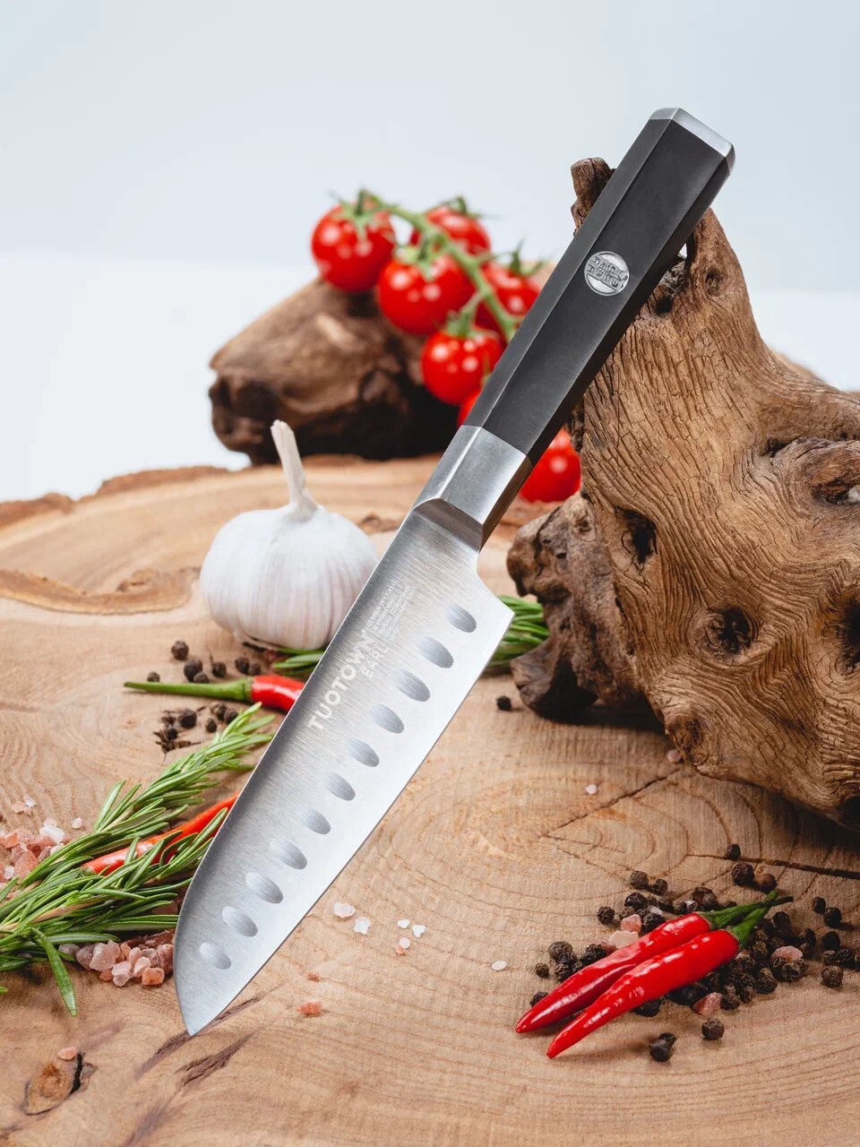 Tuotown Поварской шеф-нож Сантоку 18 см — Santoku EARL кухонный нож для шинковки и нарезки. TuoTown. Сталь 1.4116, рукоять Пакка/ABS. + фруктовый нож.