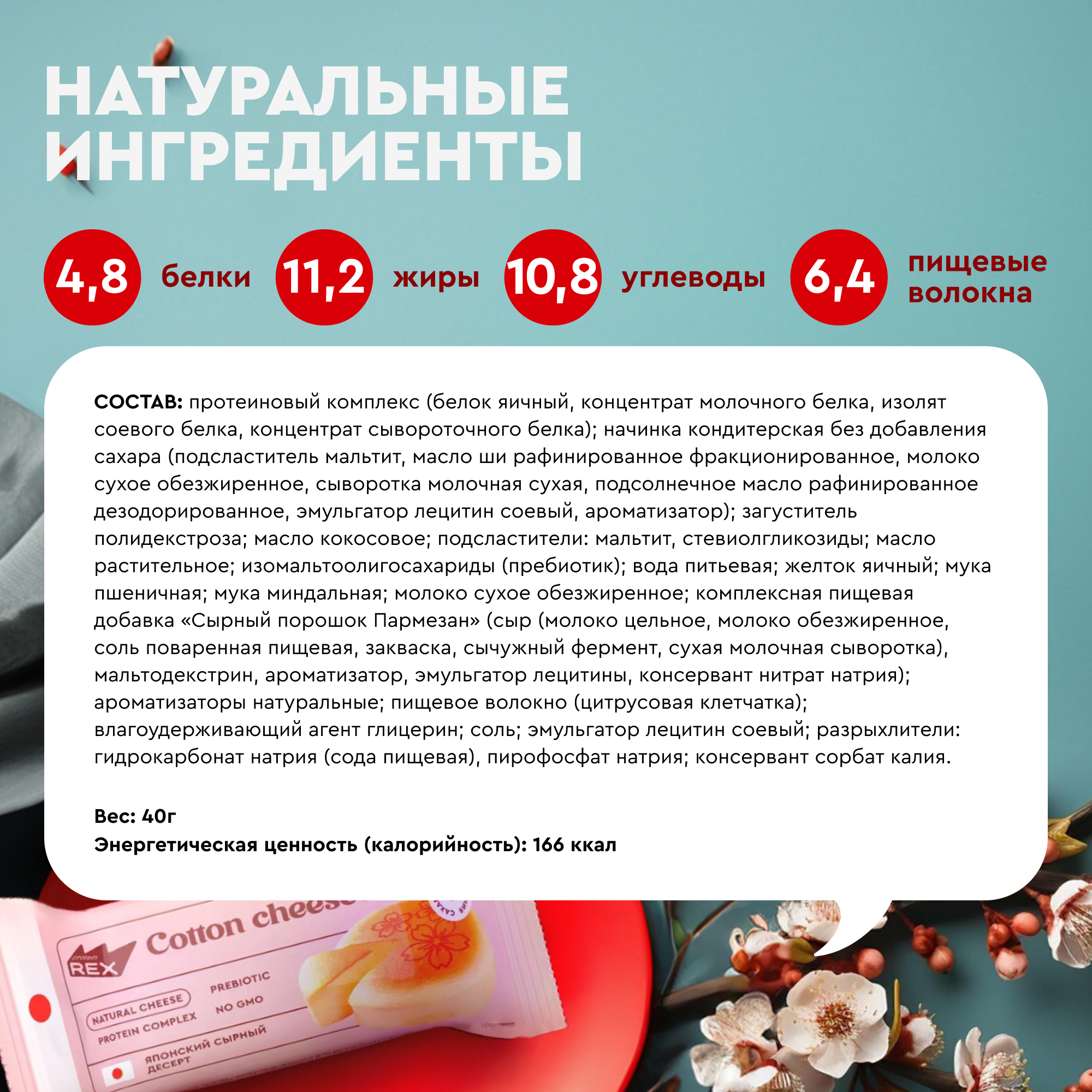 Протеиновое печенье без сахара ProteinRex Чизкейк 8 шт десерт, батончик, 166 ккал информация: