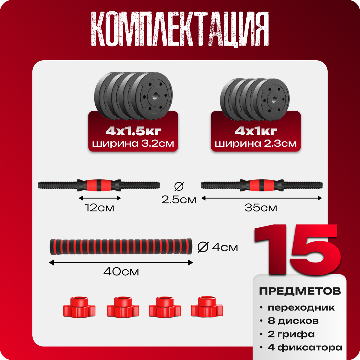 | Покрытие | диски - ПВХ, гриф - пластик |