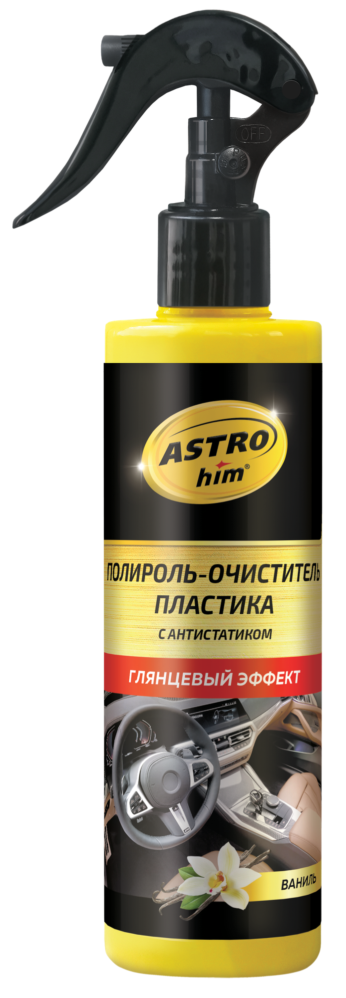 Полироль-очиститель пластика "Астрохим" (250 мл) (спрей) (ваниль) (глянцевый) информация: