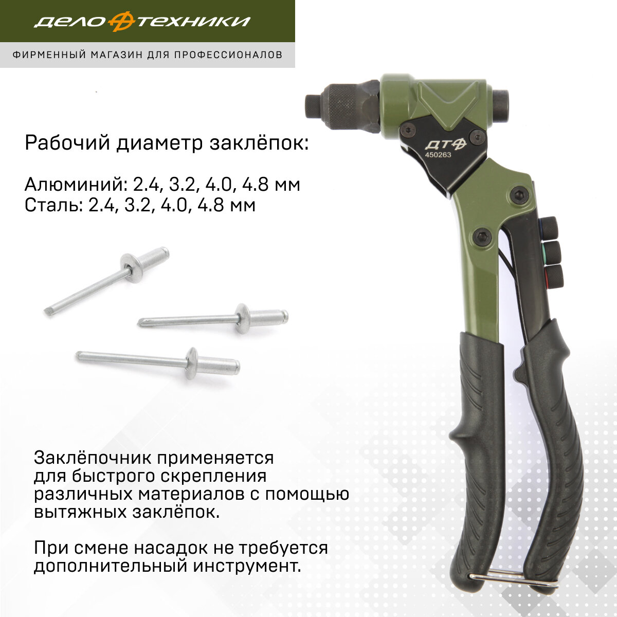 Заклёпочник механический универсальный поворотный для вытяжных и резьбовых заклёпок 458263 Дело Техники