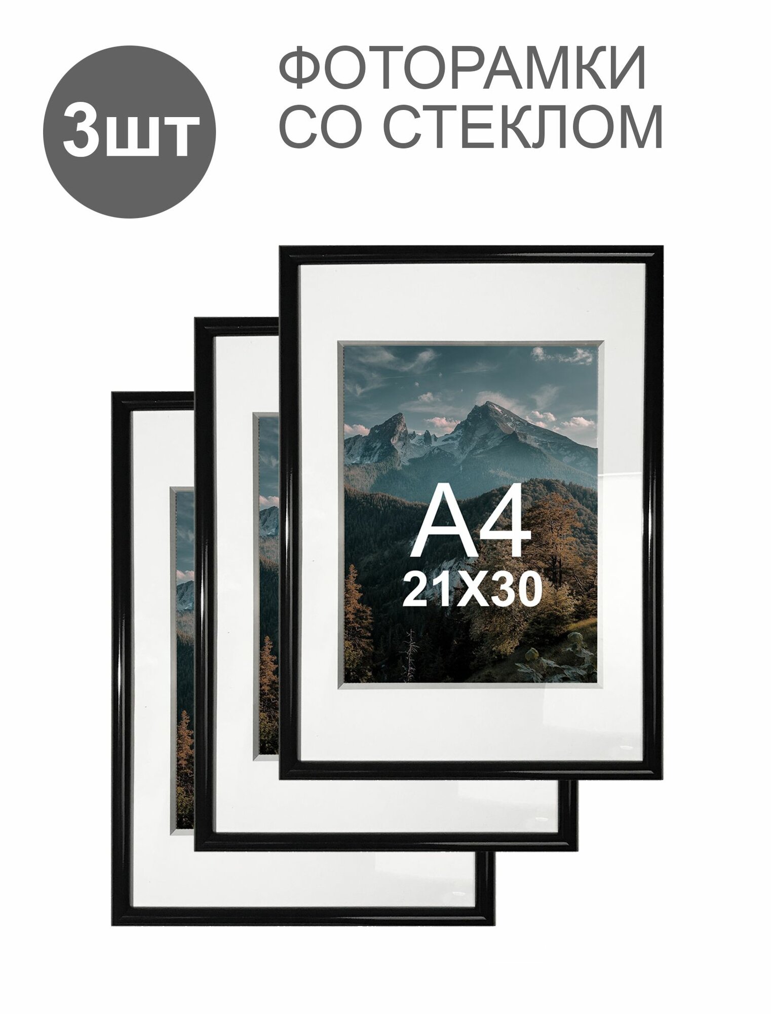 Фоторамки черные 3 шт А4 21х30 круглый профиль информация: