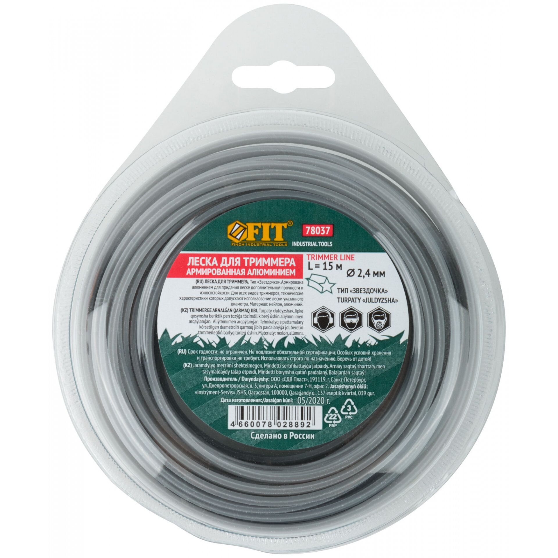 Леска для садовых триммеров армированная алюминием "Звезда" 2,4 мм х 15 м FIT 78037 информация: