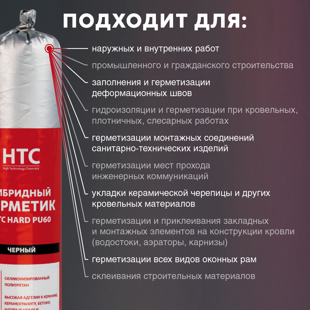 Гибридный герметик HTC Hard PU60 600 мл, черный информация: