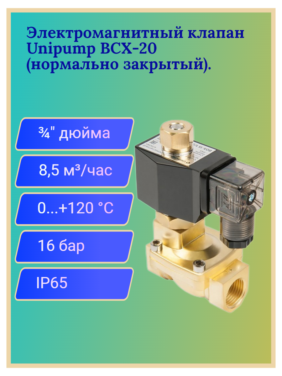 10 цен на Клапан электромагнитный UNIPUMP BCX-20 3/4, нормально закрытый
