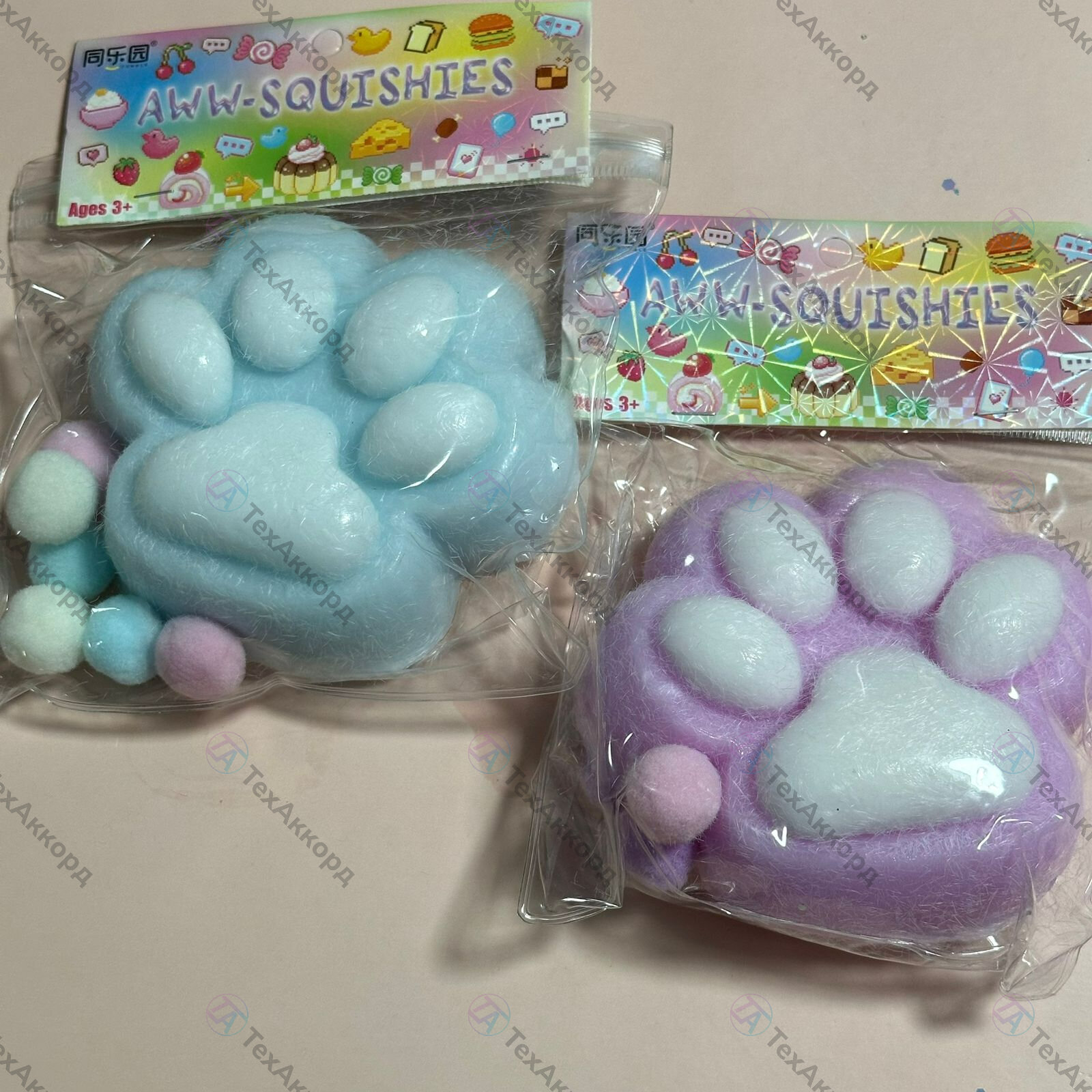 : Игрушка-антистресс сквиш "Лапки кошечки Дуэт", черно-цветные в ассортименте (2 шт.) 240 ₽