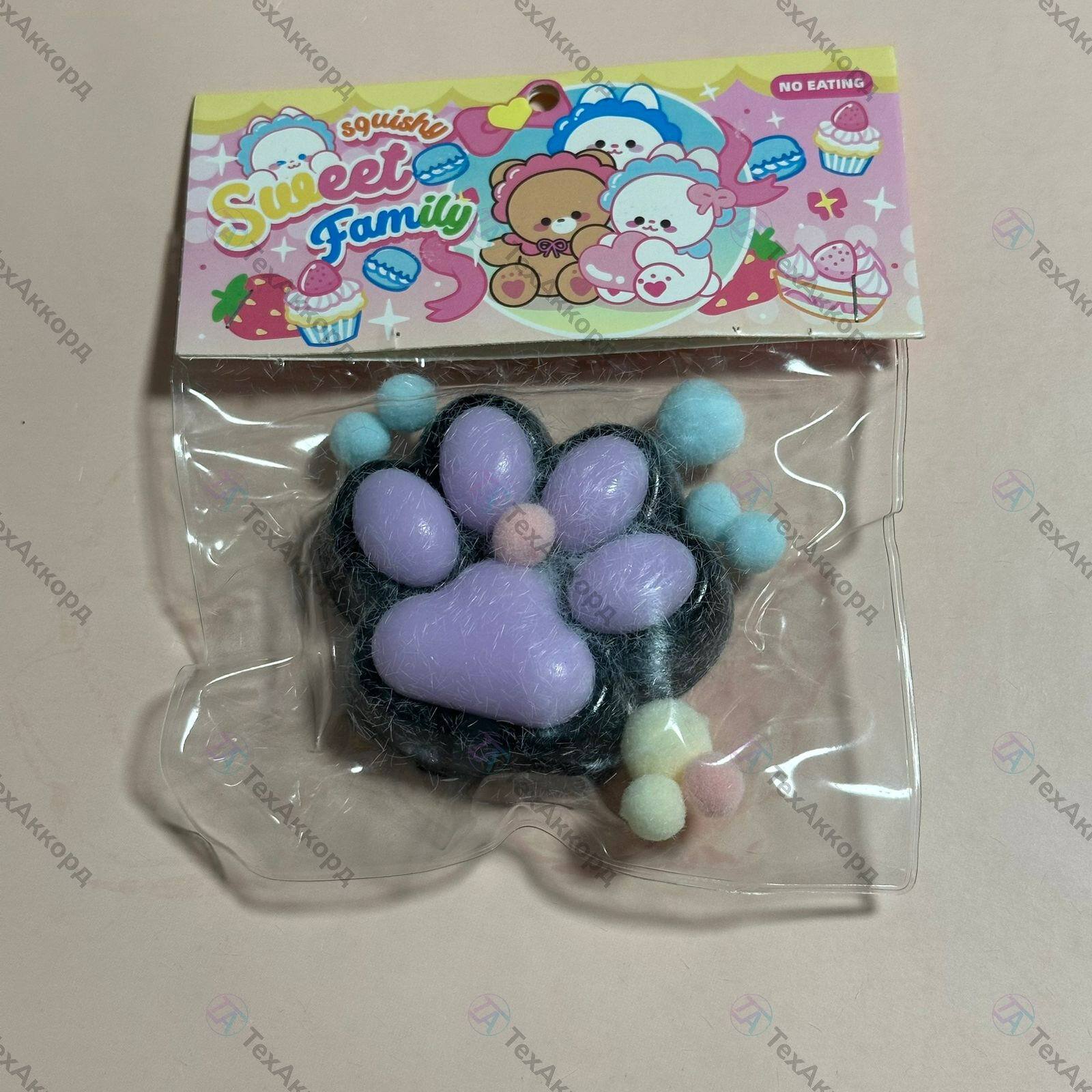 Игрушка-антистресс сквиш "Лапки кошечки", черно-фиолетовый информация: