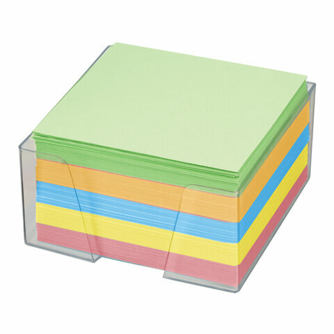 Блок для записей Brauberg в подставке прозрачной, куб 9х9х5 см, цветной (122226)