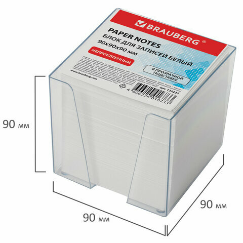 Блок BRAUBERG для записей в подставке прозрачной, куб 9х9х9 см, белый, белизна 95-98%, 122223