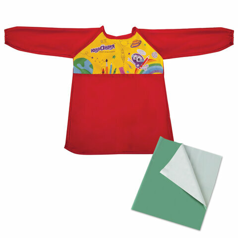 Набор для уроков труда юнландия, клеенка ПВХ 40x69 см, фартук-накидка с рукавами, красный, 228356, 228356 846 ₽