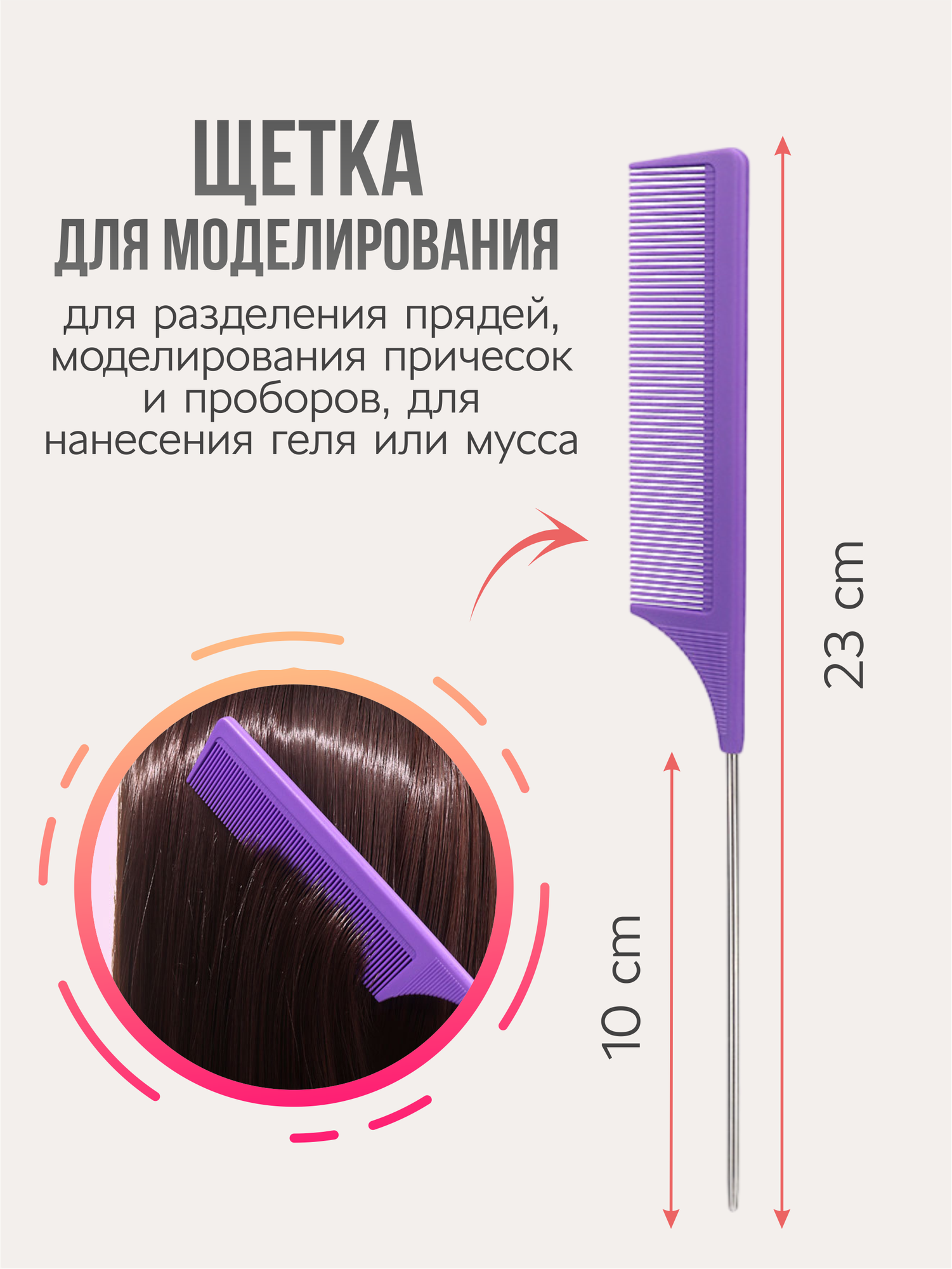 Набор профессиональных расчесок для укладки волос, для гладких причесок, фиолетовый информация: