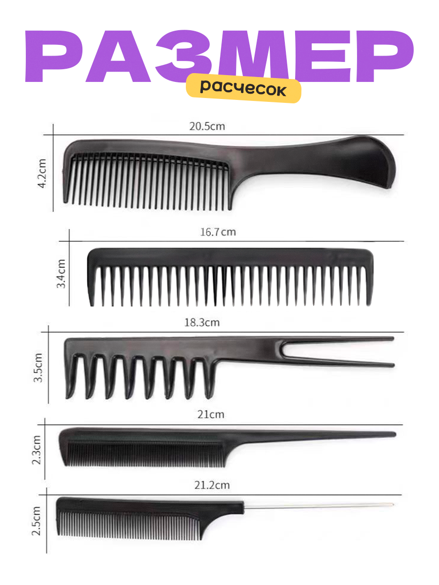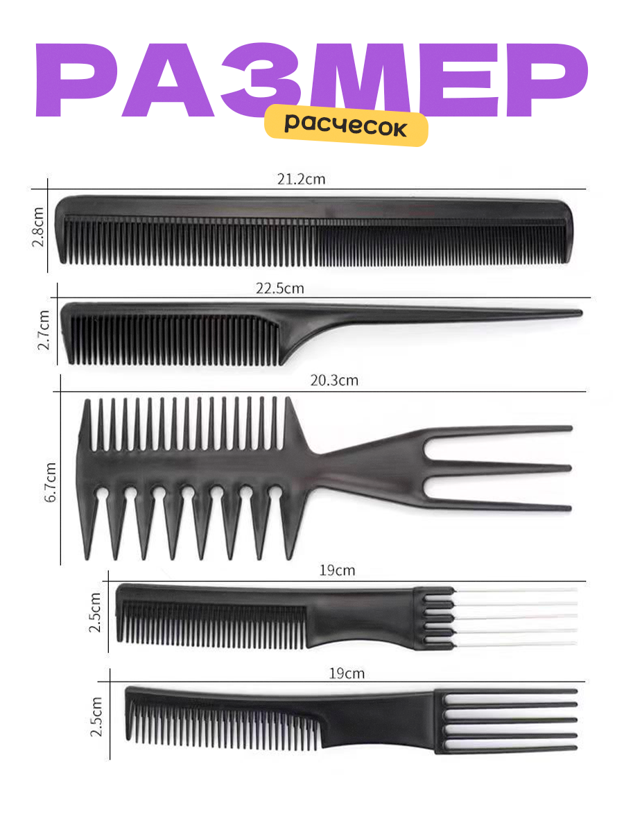 Отзывы на Набор профессиональных расчесок для укладки, окрашивания и мелирования волос, черный 10 штук