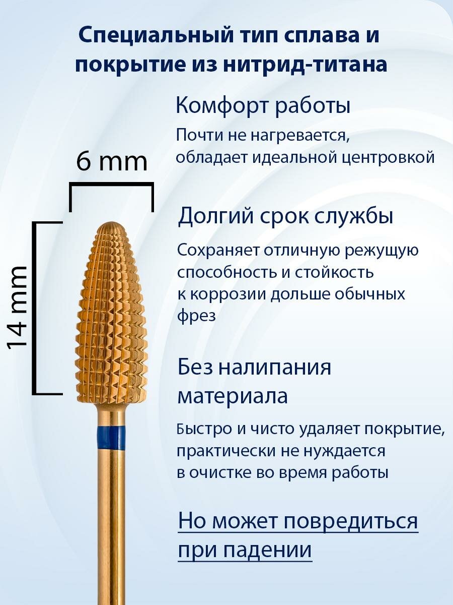 Фреза для маникюра и педикюра DIAMANIQ твердосплавная титановая реверсивная для снятия 523 275 134 060RF Тонкая кукуруза 1 469 ₽