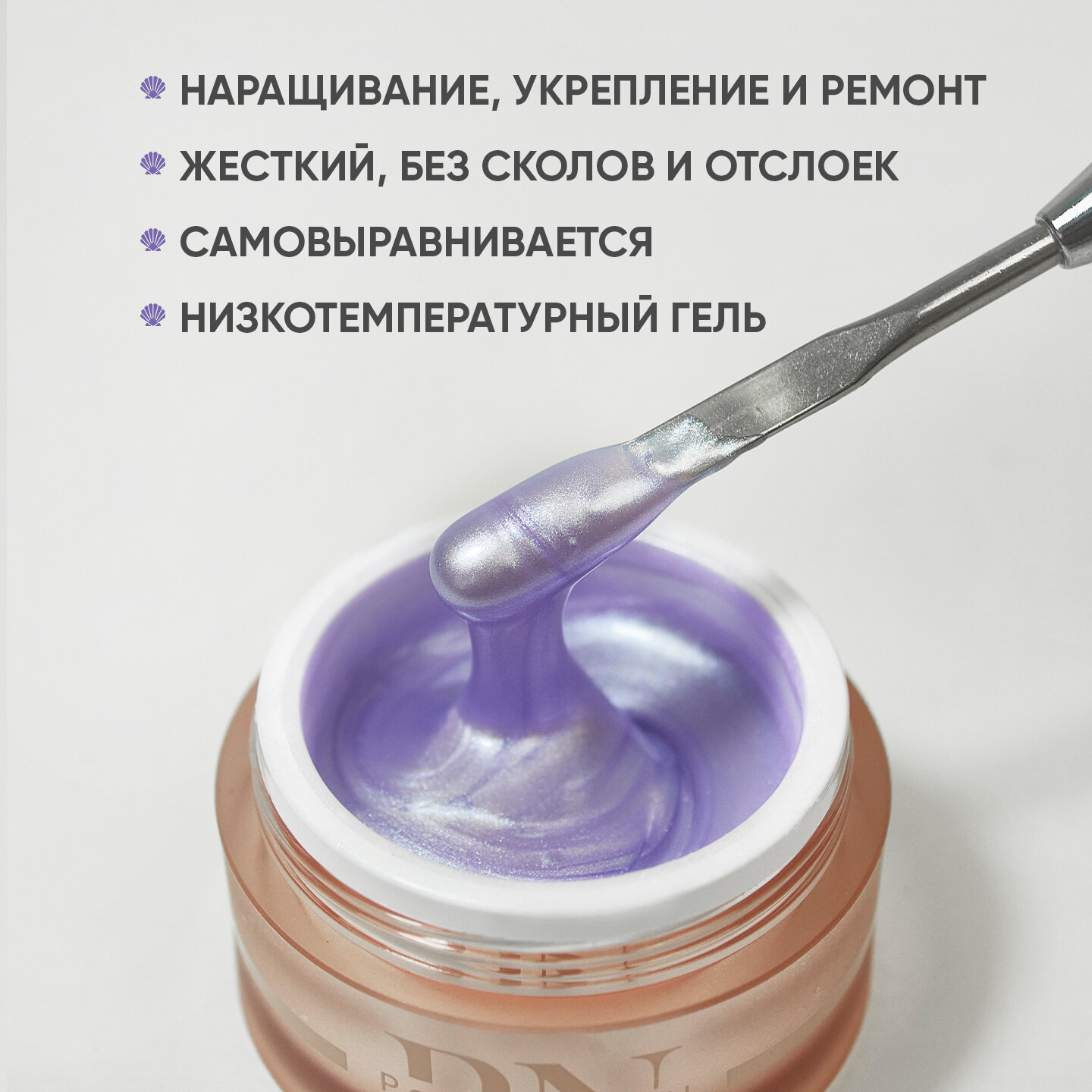 Гель для наращивания и моделирования ногтей Shell Gel №4, лавандовый, 15 мл информация: