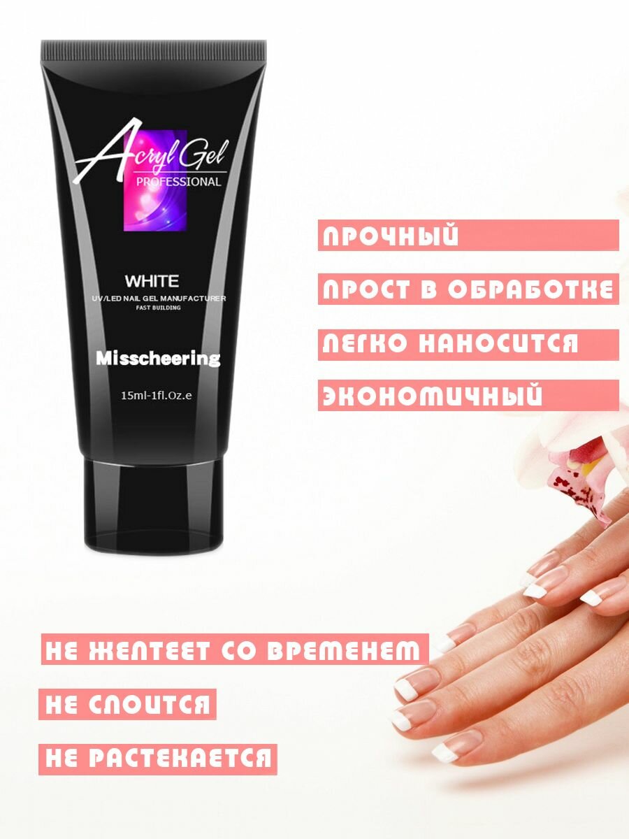 10 цен на Полигель акригель для наращивания ногтей акриловый моделирующий белый 15мл