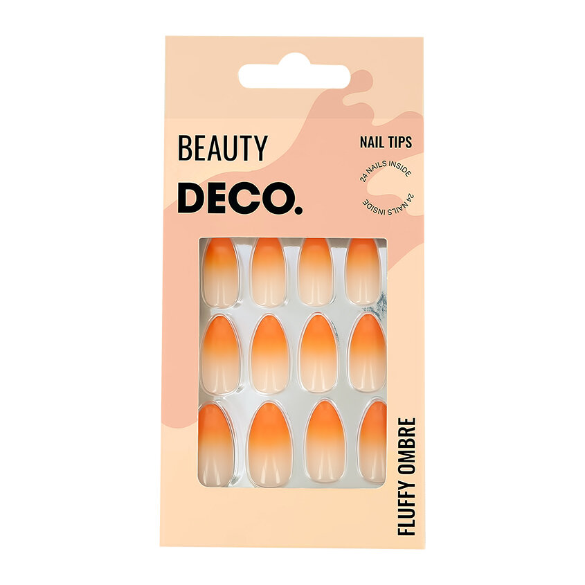 10 цен на DECO. Набор накладных ногтей FLUFFY OMBRE, orange, 24 шт, клеевые стикеры 24 шт
