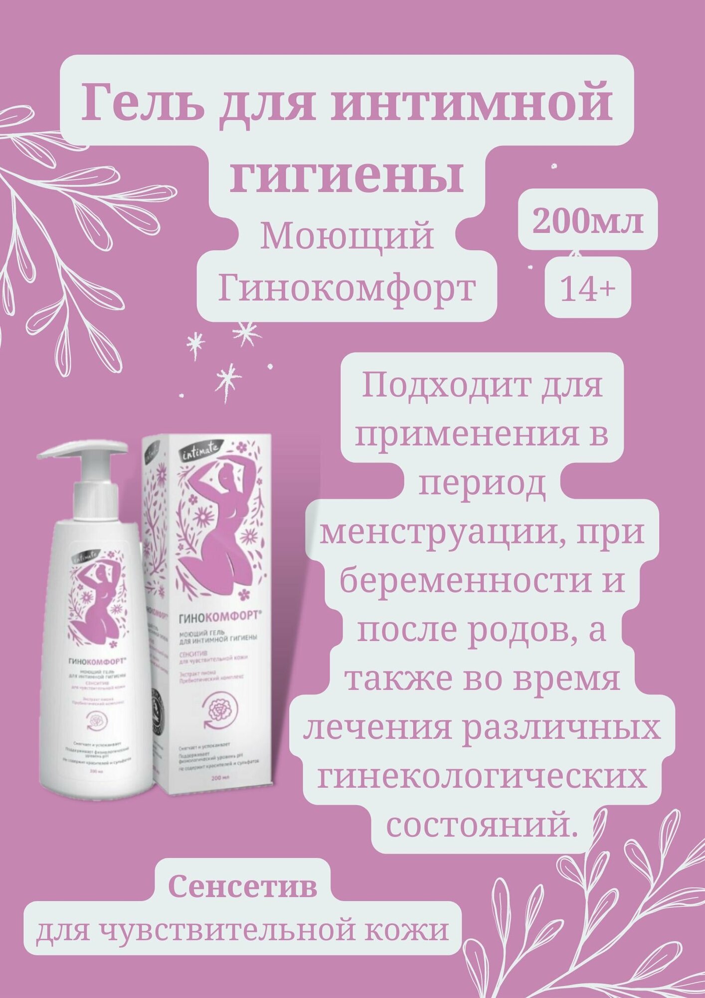 Женский гель для интимной гигиены гинокомфорт, моющий "Сенситив" для чувствительной кожи, фл. 200мл