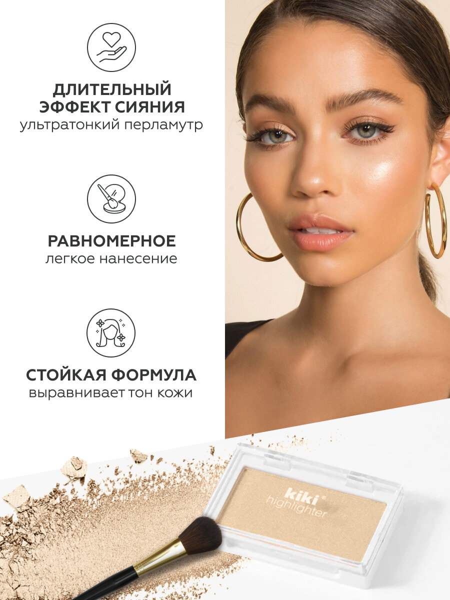 10 цен на Хайлайтер для лица и тела kiki HIGHLIGHTER 902 золотое сияние, сухой рассыпчатый, перламутровый, эффект переливания