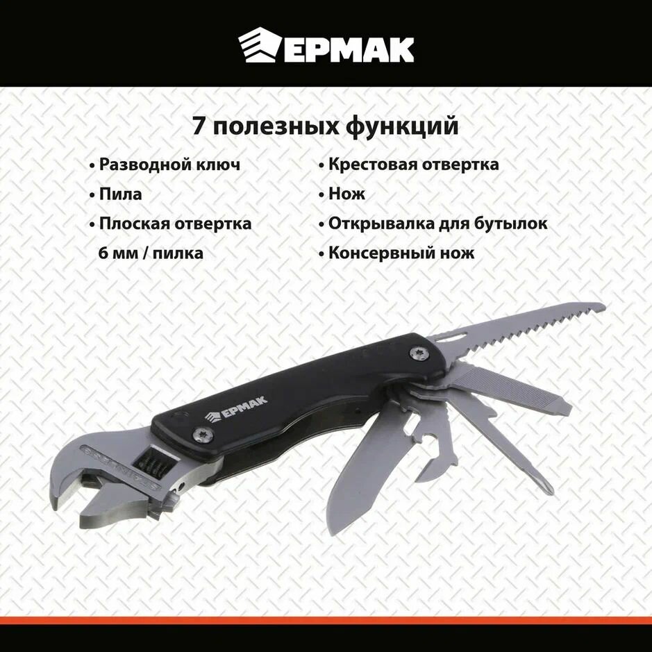 Мультитул разводной ключ, ермак, 7 в 1, 3CR14, алюминий информация: