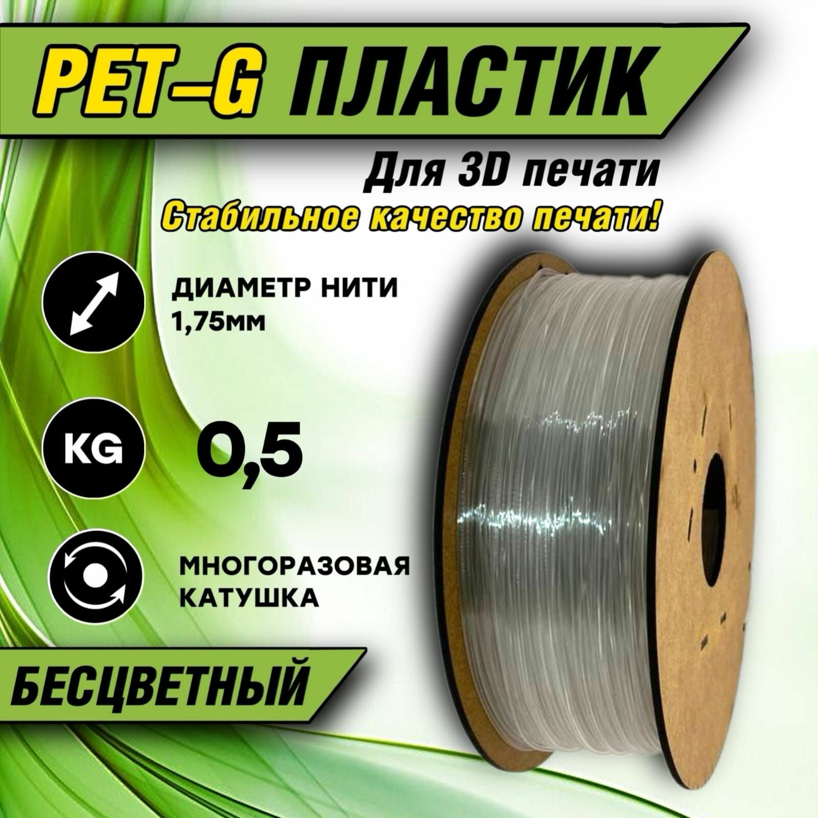 Пластик для 3d принтера PETG 1.75 "Бесцветный", 0,5 кг. информация: