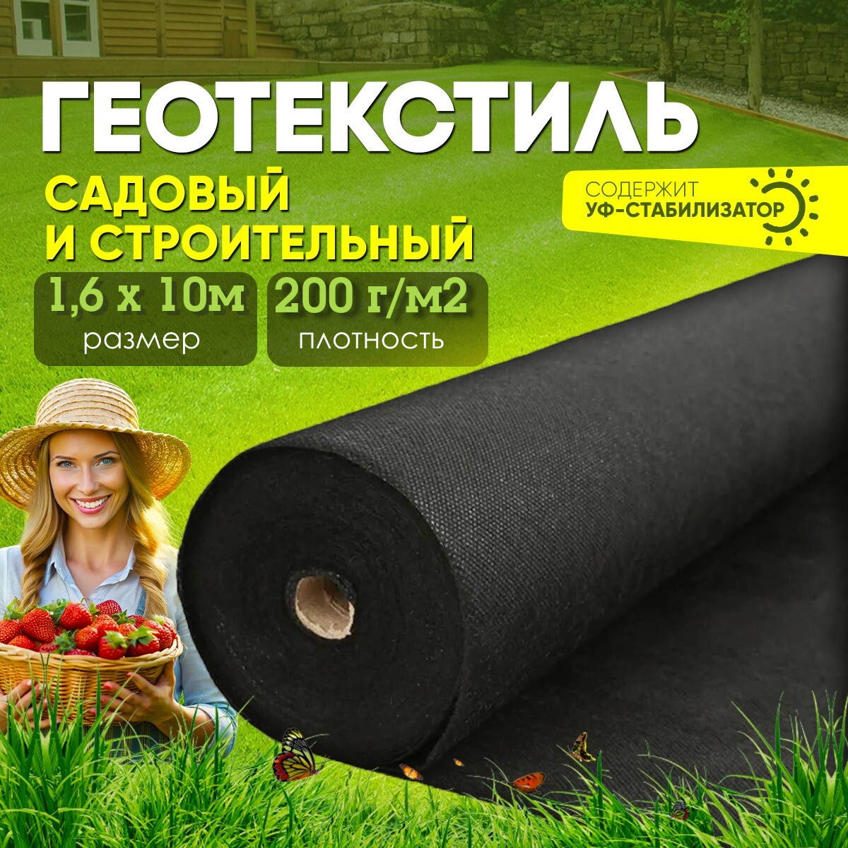 Геотекстиль, укрывной материал для растений плотность 200г/м2, размер 1,6х10м информация: