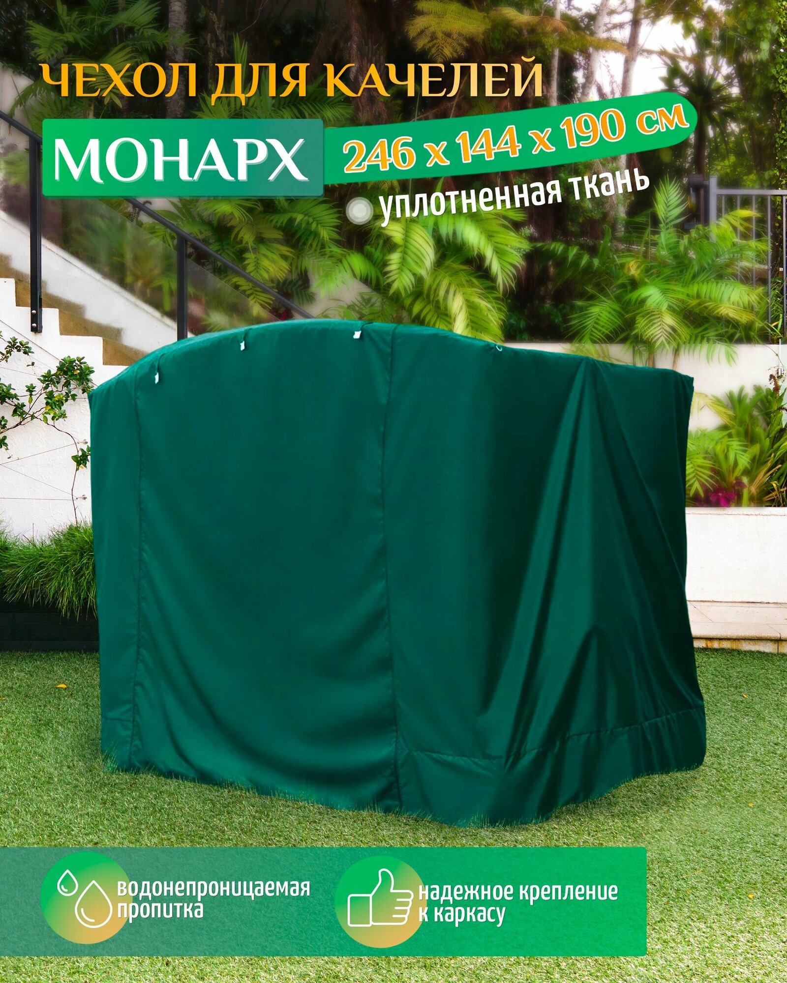10 цен на Чехол для садовых качелей Монарх (246х144х190 см) зеленый, чехол укрытие на качели садовые от дождя, накидка на уличную для дачи