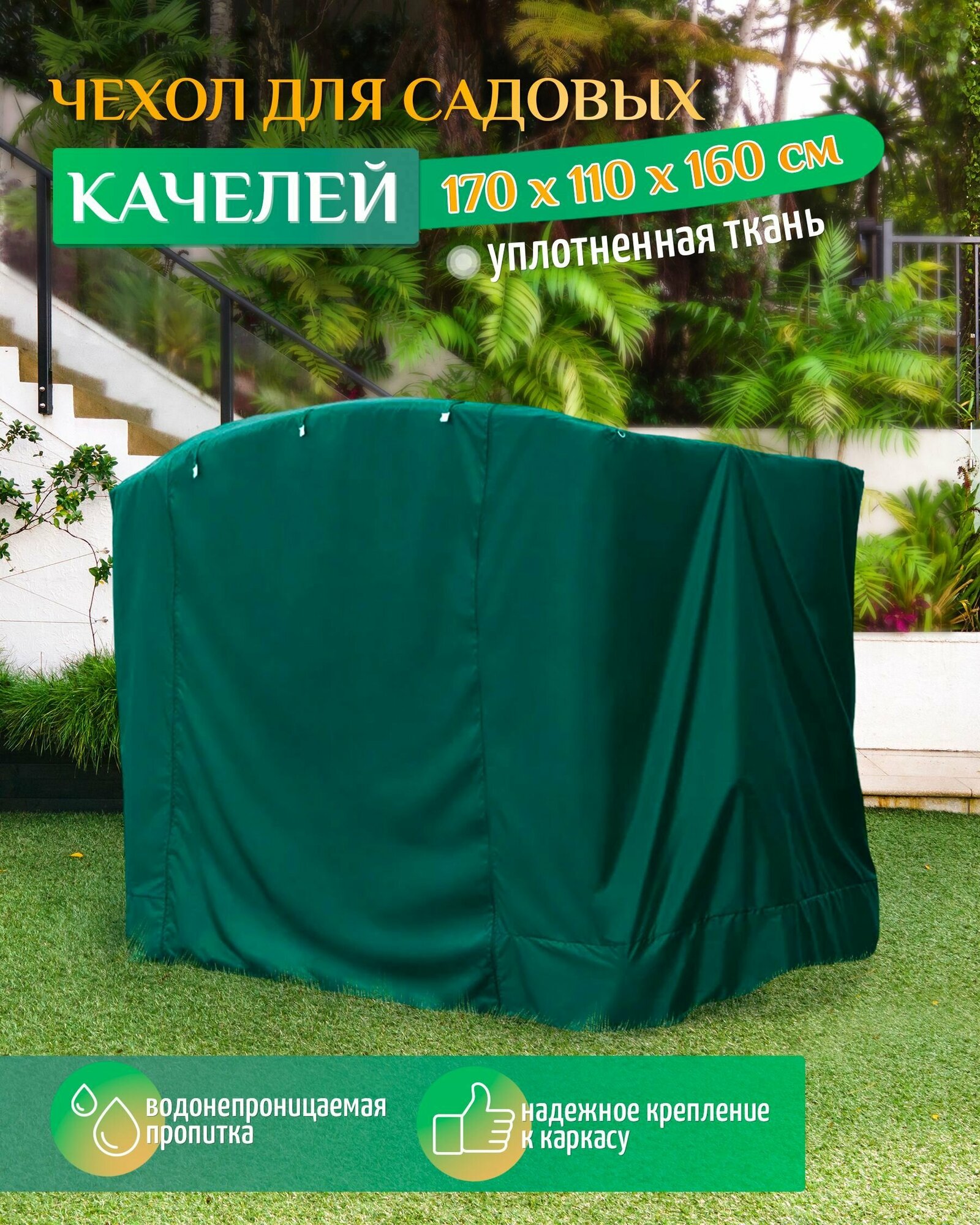 Чехол для садовых качелей (170х110х160 см) зеленый, чехол укрытие на качели садовые от дождя, накидка на уличную для дачи информация: