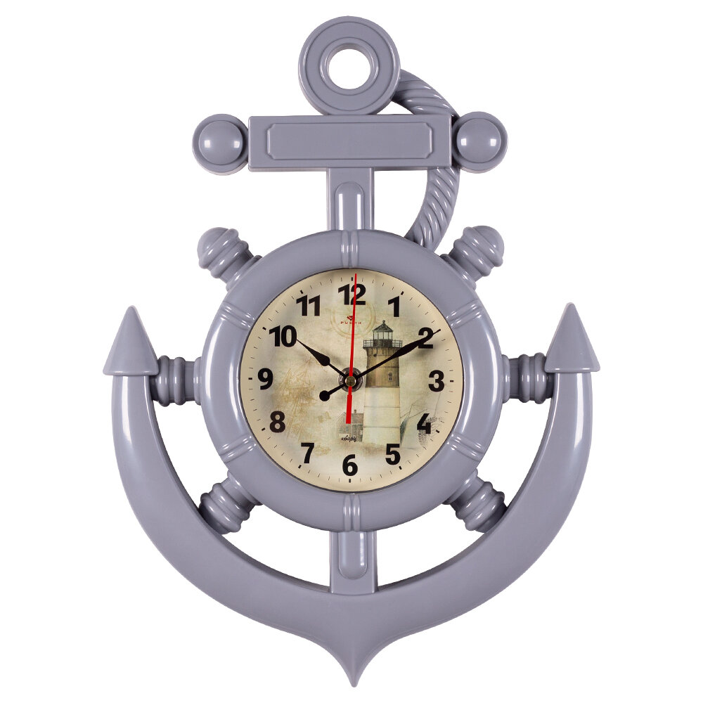 Часы настенные Рубин "Маяк", в форме якоря, 27,5х38 см, корпус серый (3827-006) информация: