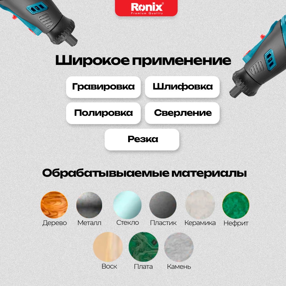 Отзывы на Аккумуляторный гравер Ronix с аксессуарами - 5 скоростей, до 30000 оборотов в минуту!