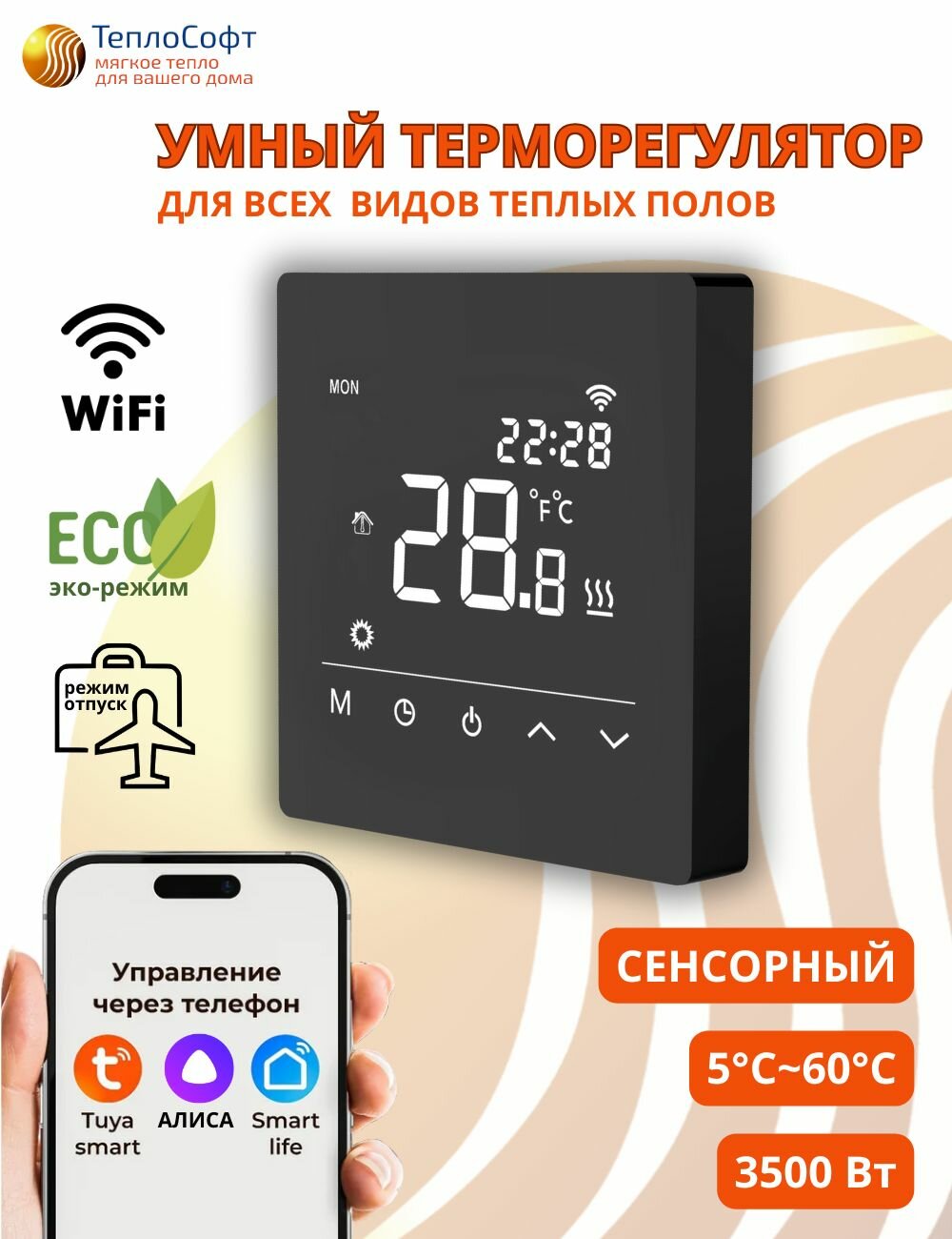 Умный терморегулятор для тёплого пола с функцией WI-FI черный, терморегулятор для обогревателя информация: