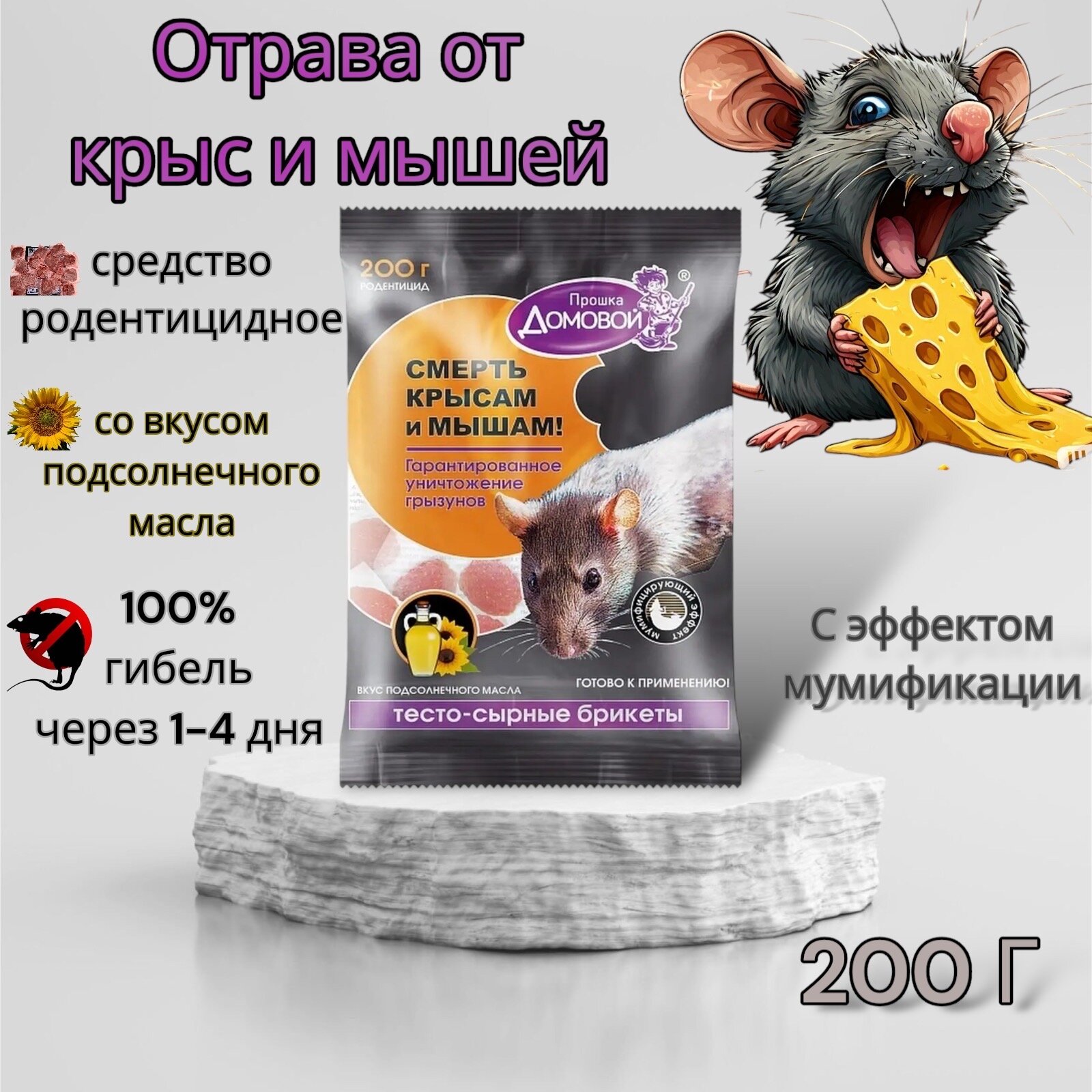 яд от грызунов, отрава приманка для крыс и мышей 200г. брикет средство мощное мумифицирующая информация: