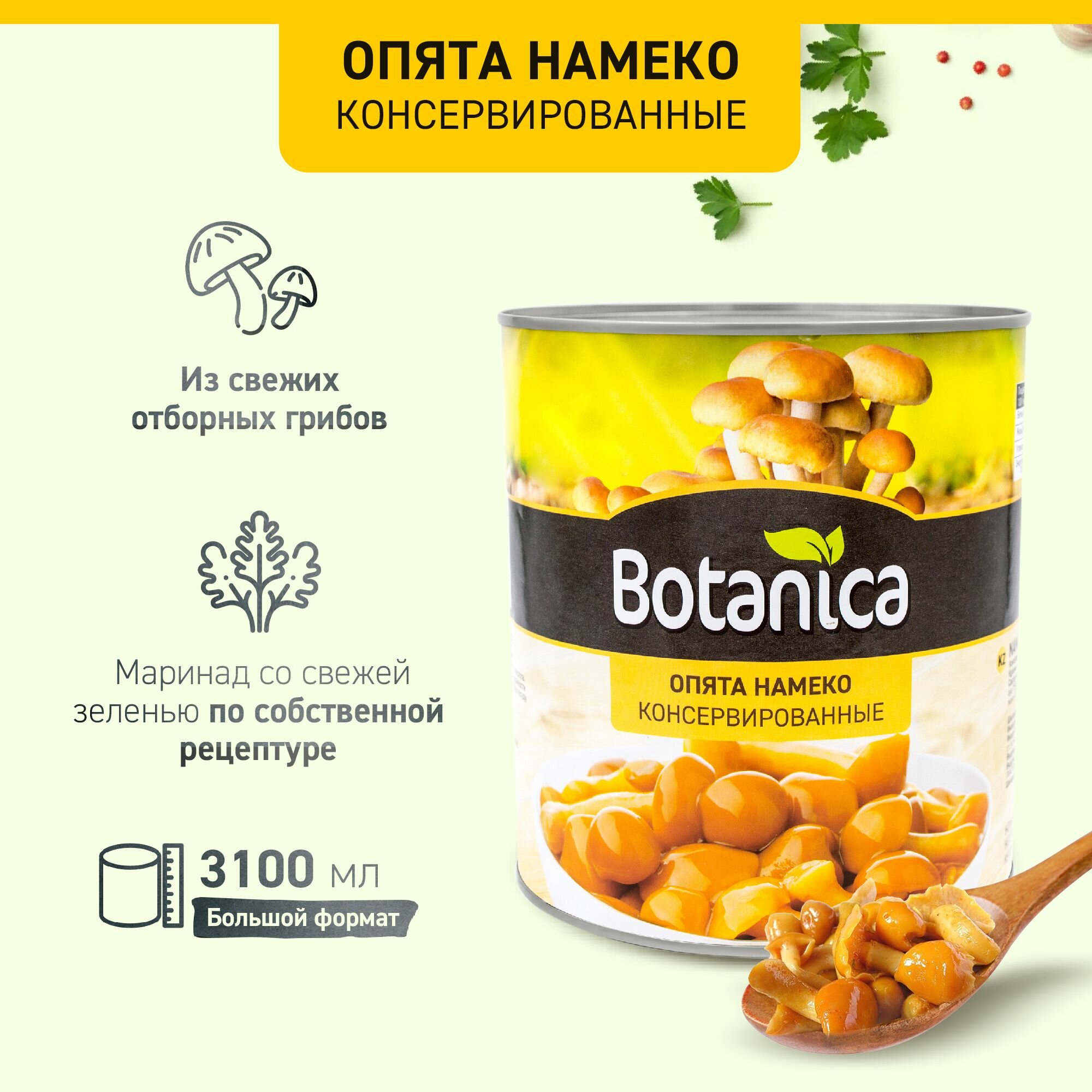 Грибы опята консервированные целые, Botanica, 3100 мл информация: