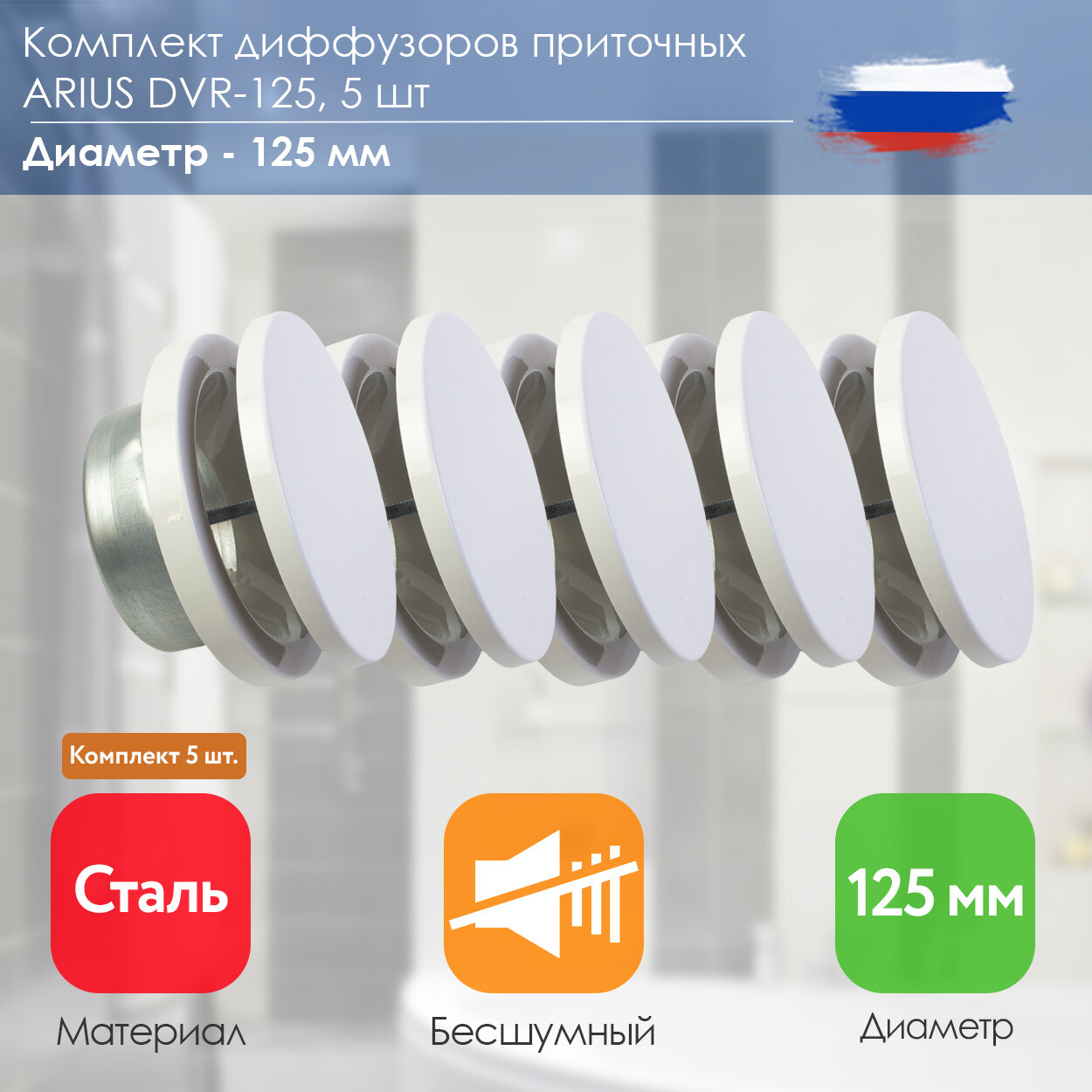 Комплект 5 шт. Диффузор/Анемостат приточный шумоподавляющий стальной ARIUS DVR-125 (арт. 135562), 125 мм, белый RAL 9016 информация:
