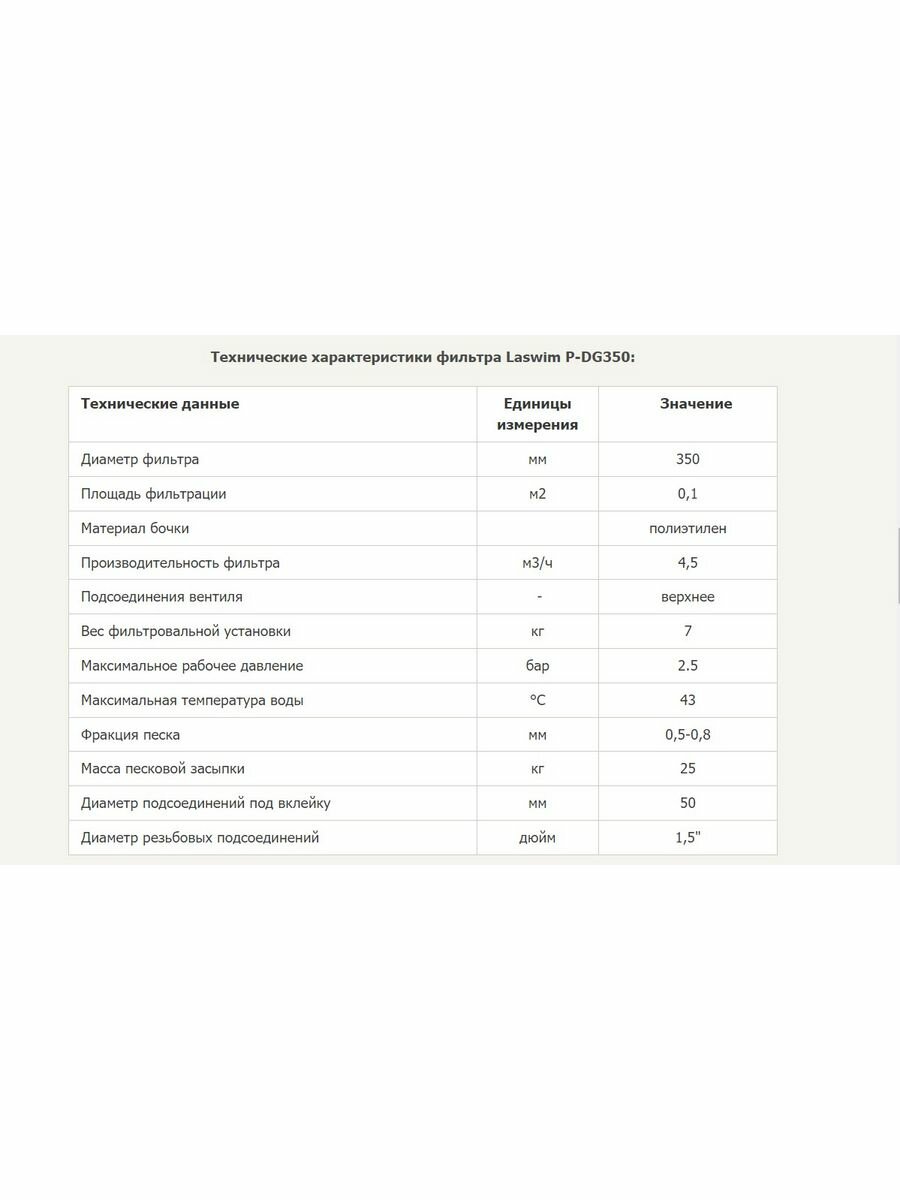 Отзывы на Фильтр песочный Laswim P-DG350, Ø 350 мм, 4,5 м3/ч, с 6-позиционным вентилем, верхнее подключение 1 1/2", цена - за 1 шт
