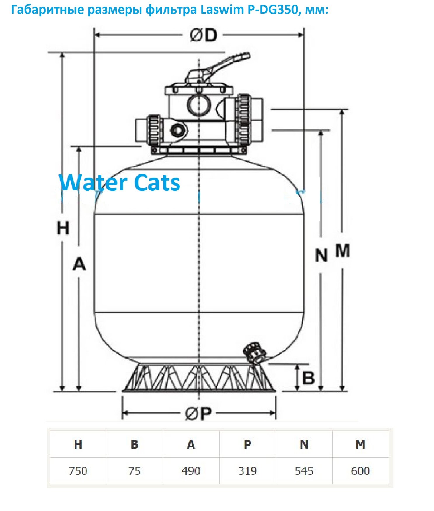 Фильтр песочный Laswim P-DG350, Ø 350 мм, 4,5 м3/ч, с 6-позиционным вентилем, верхнее подключение 1 1/2", цена - за 1 шт информация: