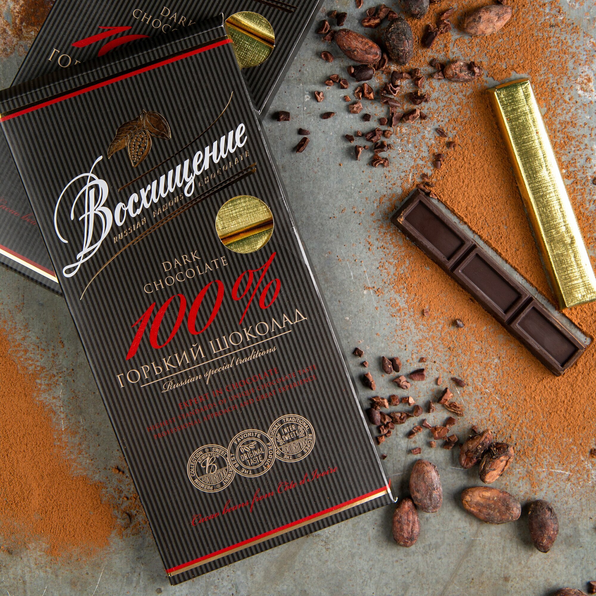 Шоколад "Восхищение" горький 100% какао, порционный 140г, без сахара информация: