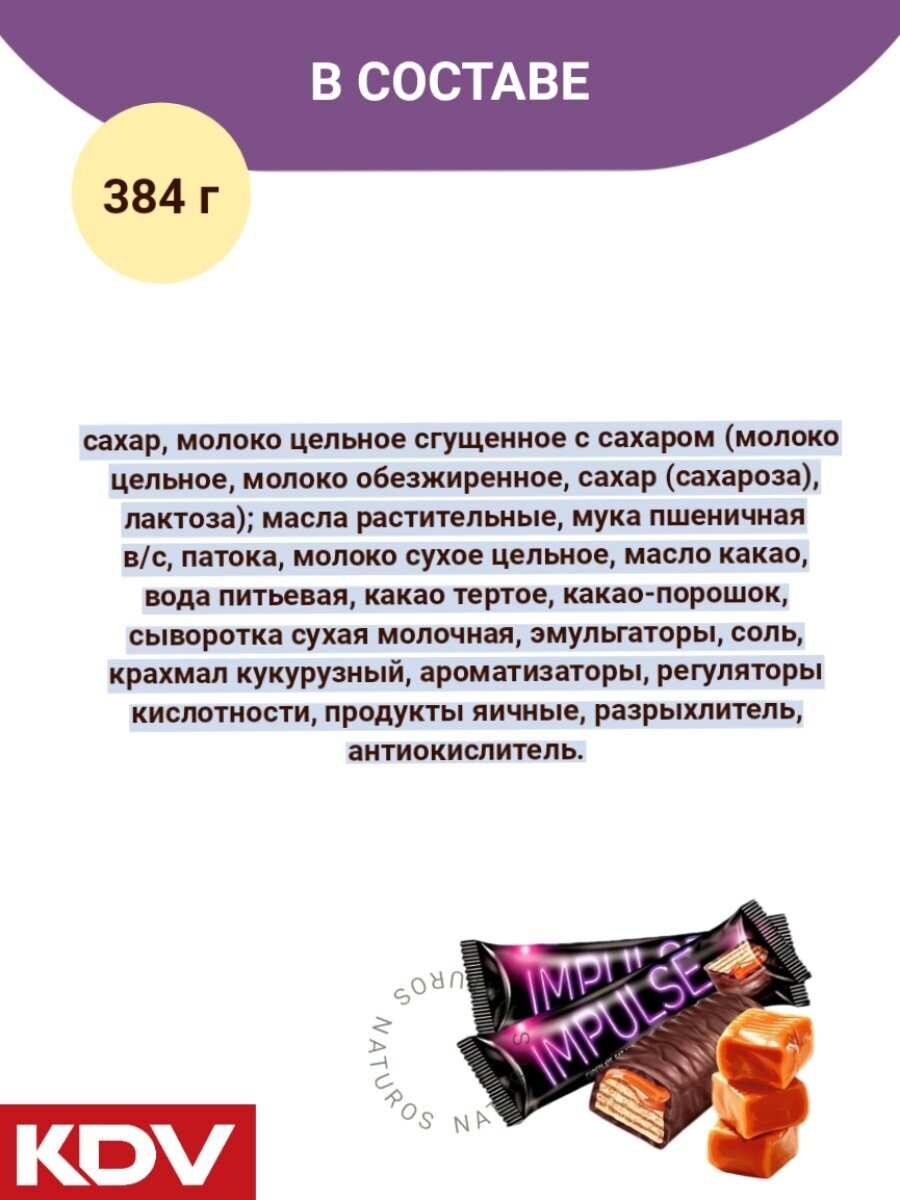 Вафли «Impulse» с мягкой карамелью в глазури, 16 г (упаковка 24 шт.) информация: