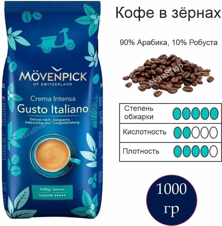 Кофе в зёрнах 1 кг MOVENPICK Crema Gusto Italiano, Мовенпик смесь зерен арабики и насыщенных зерен робусты, из Финляндии 4 090 ₽