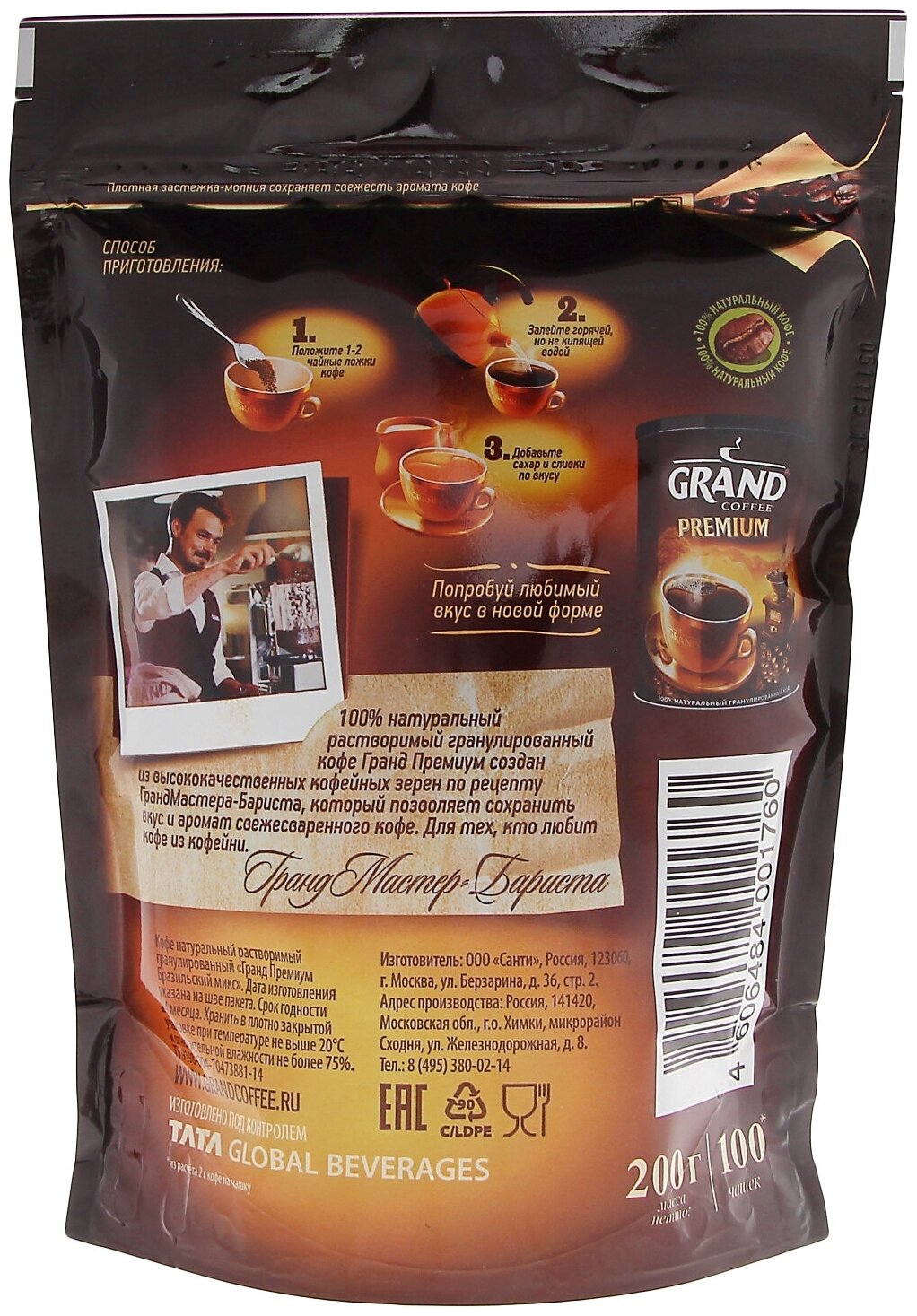 Кофе Grand Premium по-бразильски гранулированный, д/пак 200 г информация: