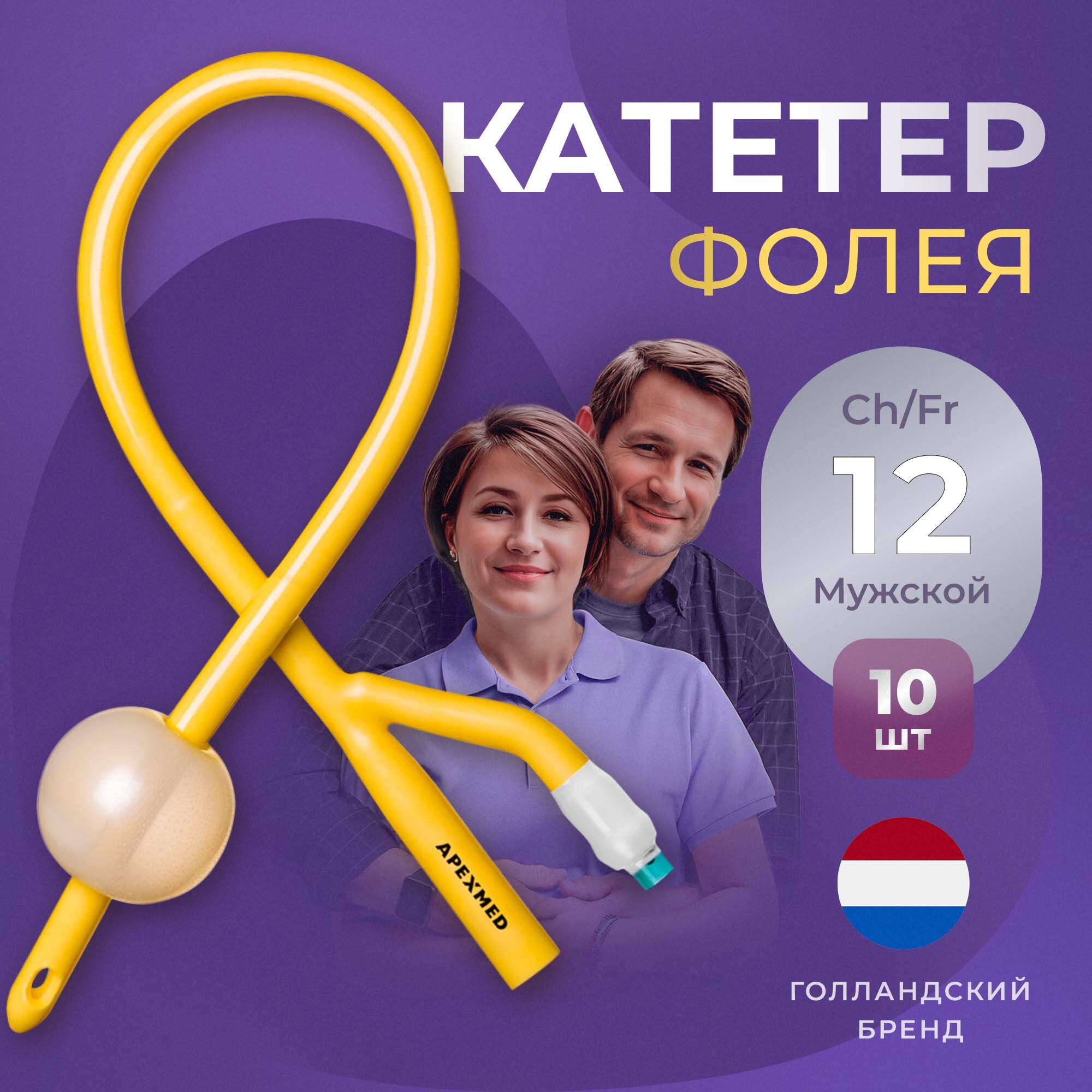 Катетер урологический Фолея мужской двухходовой, Ch/Fr 12, 10 шт, Apexmed информация: